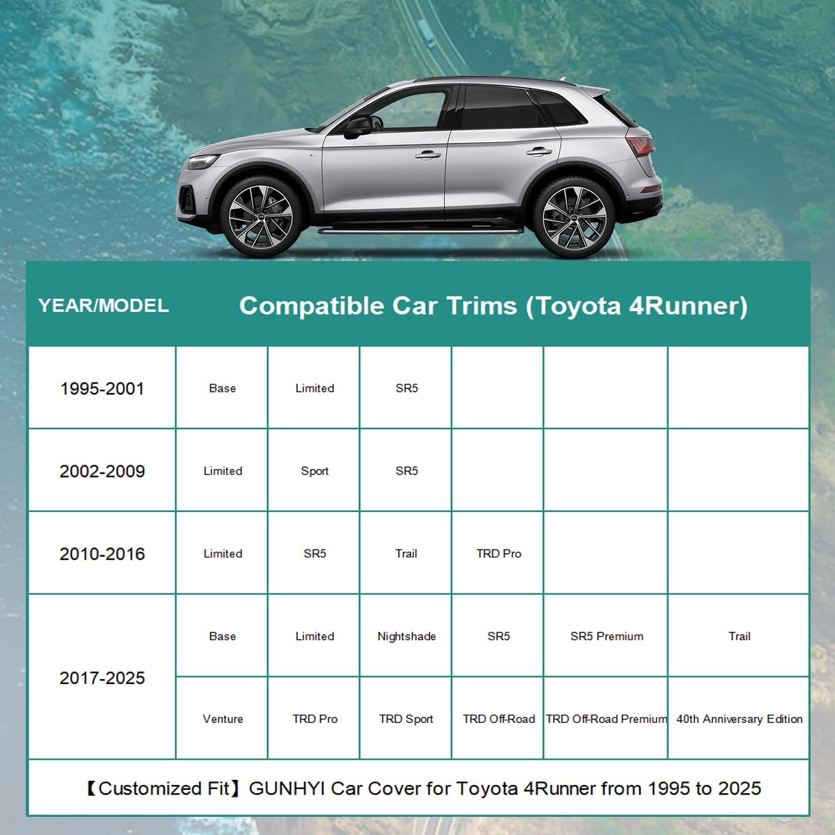 - ăCompatible withăThis Full Car Cover Custom fit for Toyota 4Runner from 1995 to 2025. Comes with a microfiber towel that you can use to clean your car, because if there is sand on the surface of the car before use, it may damage the paint.