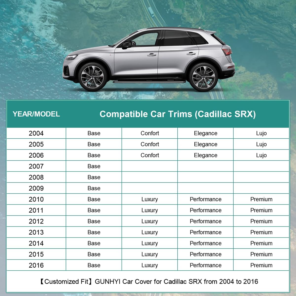 - ăCompatible withăThis Full Car Cover Custom fit for Cadillac SRX from 2009 to 2016. Comes with a microfiber towel that you can use to clean your car, because if there is sand on the surface of the car before use, it may damage the paint.