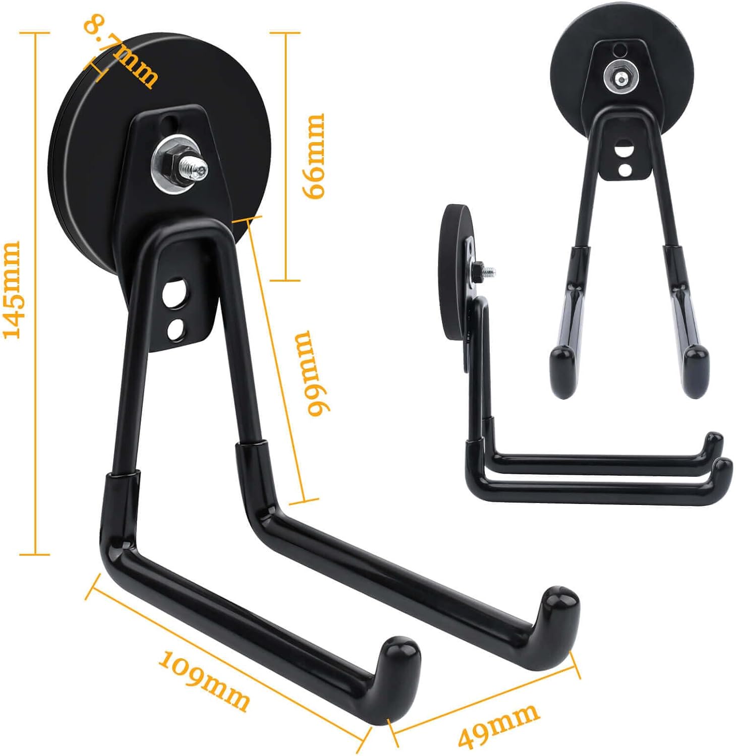 2 Pack Magnetic Hooks, Large Manget with Hooks, 2.59" (66 mm) Magnetic Hooks Heavy Duty for Hose, Jig Saw, Circular Saw,Workshop Organization, Tool Hooks for Hammer Drill, Garden Tool, Black