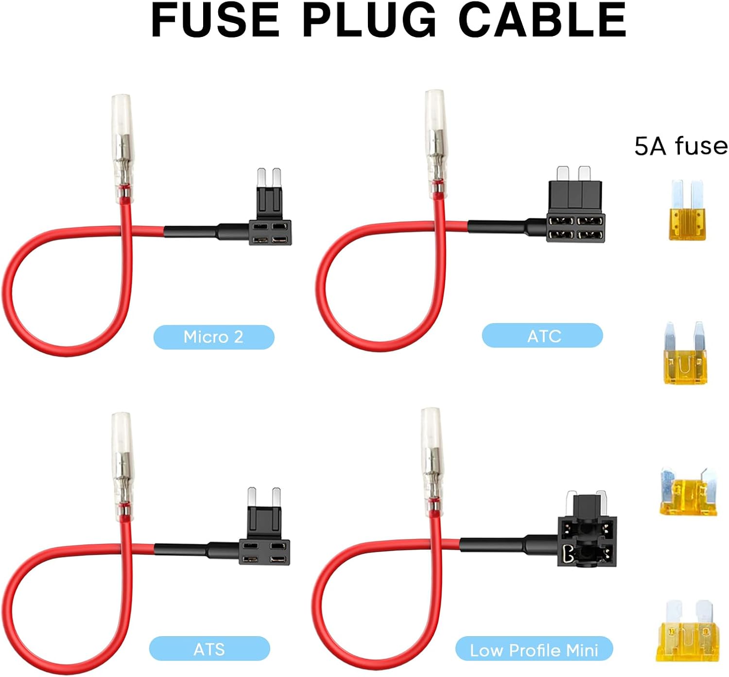 - Radar detector cable kit is equipped with various fuse sizes,including four common sizes: ATC,ATS,Micro 2,and Mini,Each fuse tap is equipped with a 5a fuse.Please read the user manual carefully before use