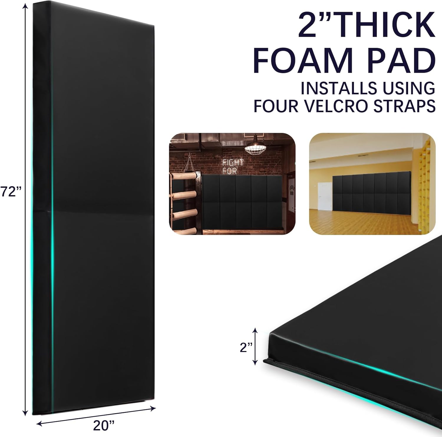 - 💯【Extensive coverage and value】 : Each package includes one smooth black sports protective wall pads, providing a total coverage area of 10 square feet. With pad sizes of 72"x20"x2" they can accommodate various wall sizes, ensuring comprehensive protection.