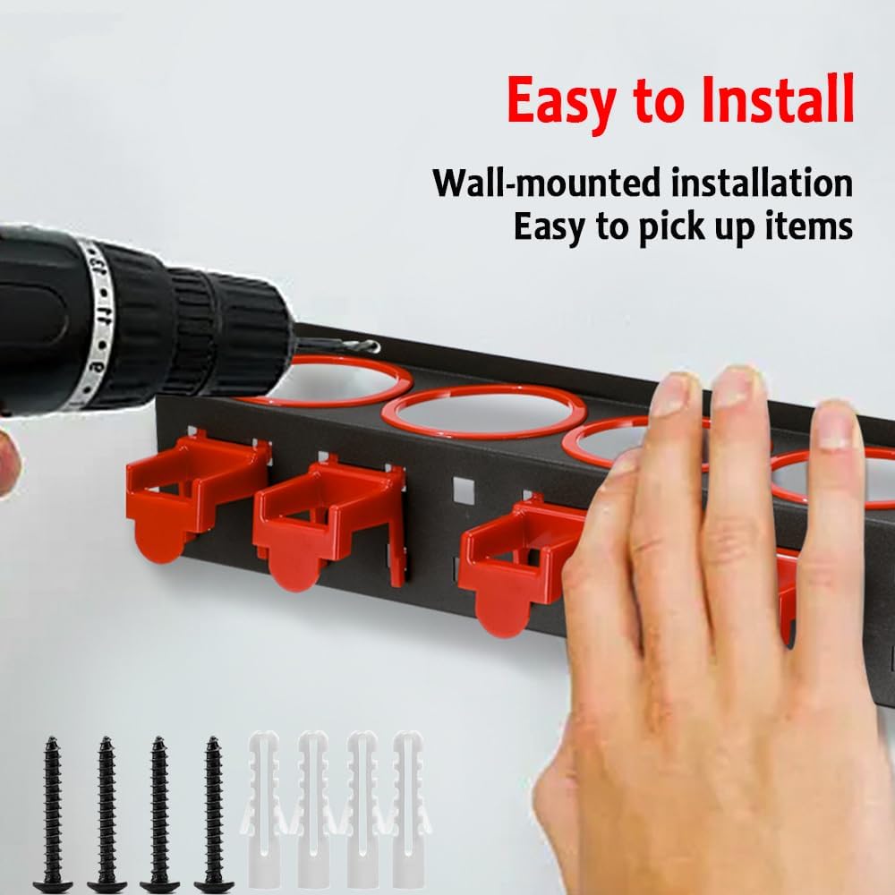 - SIZE: The spray bottle rack size: 4.5 inch*21 inch, Hole diameter is 3.3 inch. Package include: 2 spray bottle rack+ 10 Hooks+ 1 set of detail brush+ 8pcs screws. Large-capacity design to meet all storage needs. You can easily get the watering can, polishing machine, vacuum gun, cleaning gun and other tools you need. It can well organized your tools.