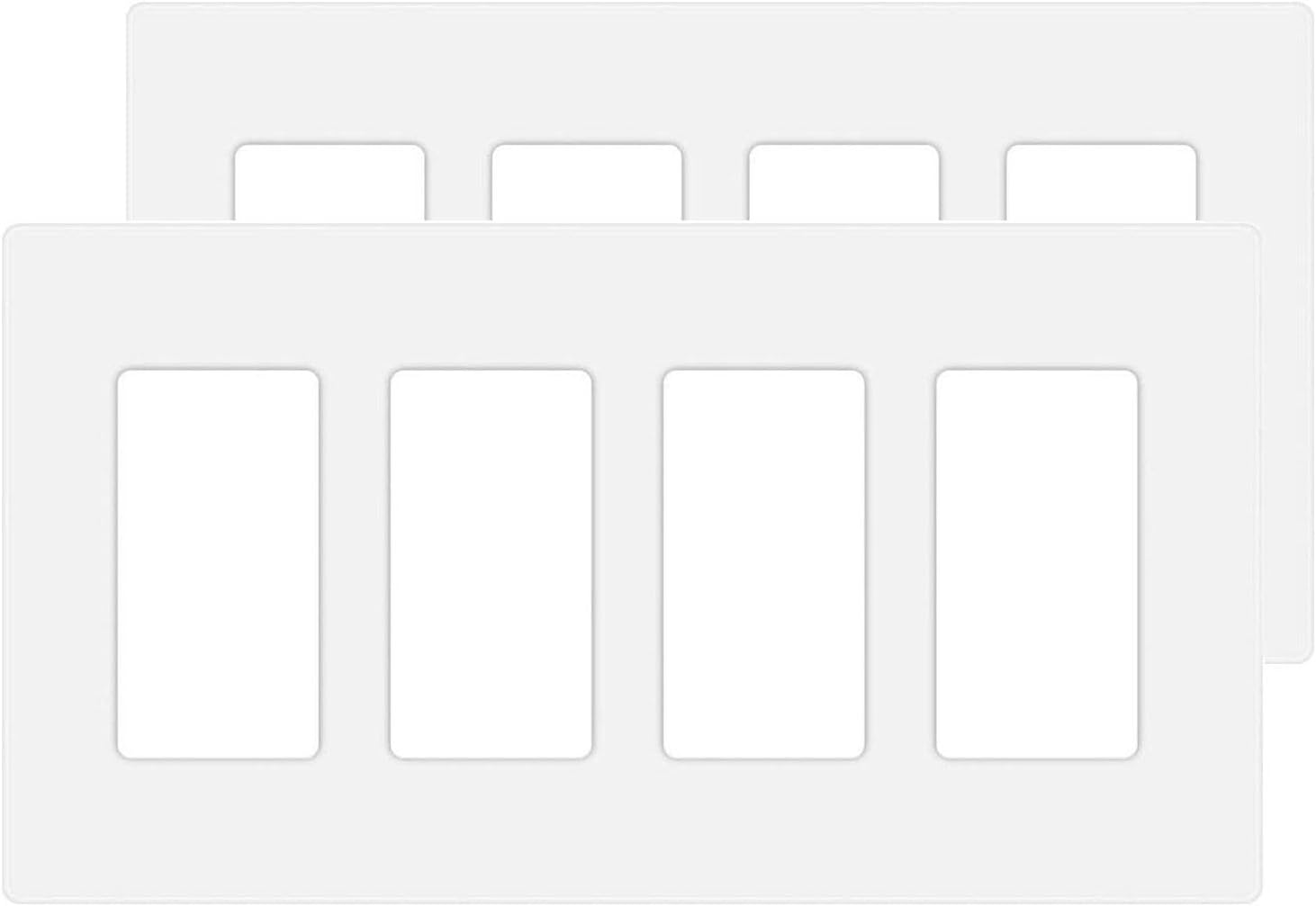 4-Gang Screwless Decora Wall Plate Cover Switch Outlet Electrical Faceplate for Light Switche, Smart Switch, Receptacle, Dimmers, USB Outlet, GFCI, Child Safe Cover Plate, White (2-Pack)