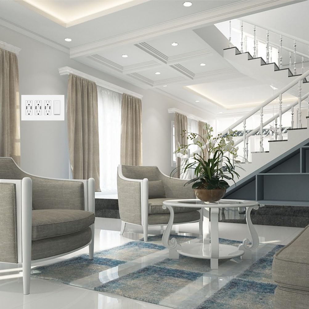 - 【Safe and High Quality】COAPIN258 wallplates are no visible screw design for child safety. Fire resistant material with no fire hazard. Switch Outlet cover is made of durable unbreakable polycarbonate thermoplastic, wall plate is flexible and resilient which can withstand bends, twists, hard impacts and heavy force, light switch cover plate heat resistant to temperatures over 100°F to protect against discoloration and fading over time.