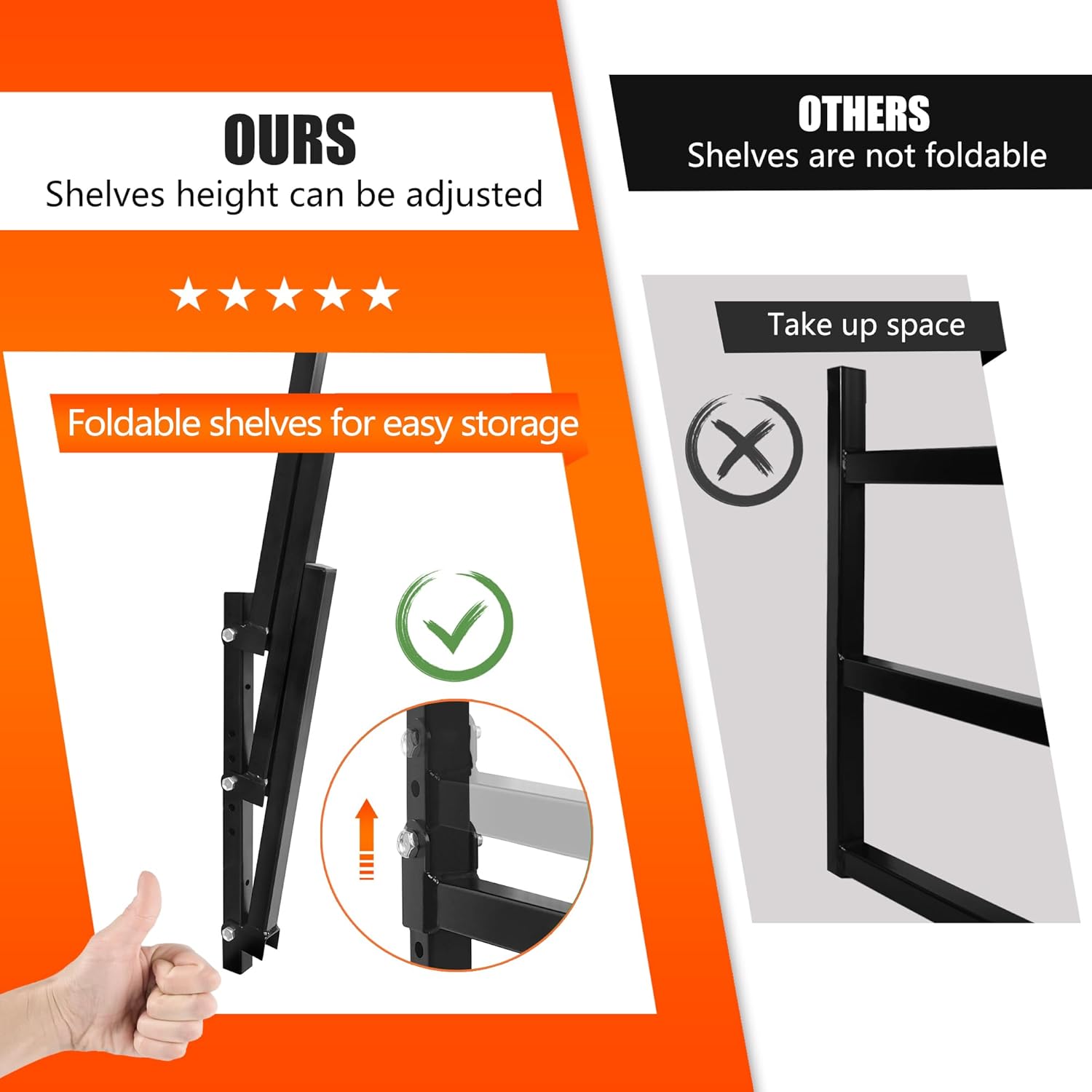 - ăEASY AND QUICK INSTALLATIONăStep-by-step instructions make it easy for anyone to install in a few minutes! The lumber rack for garage is small in size and easy to operate. There are several adjustable holes in the middle of the partition, which can adjust the position of the partition to meet your different storage needs.