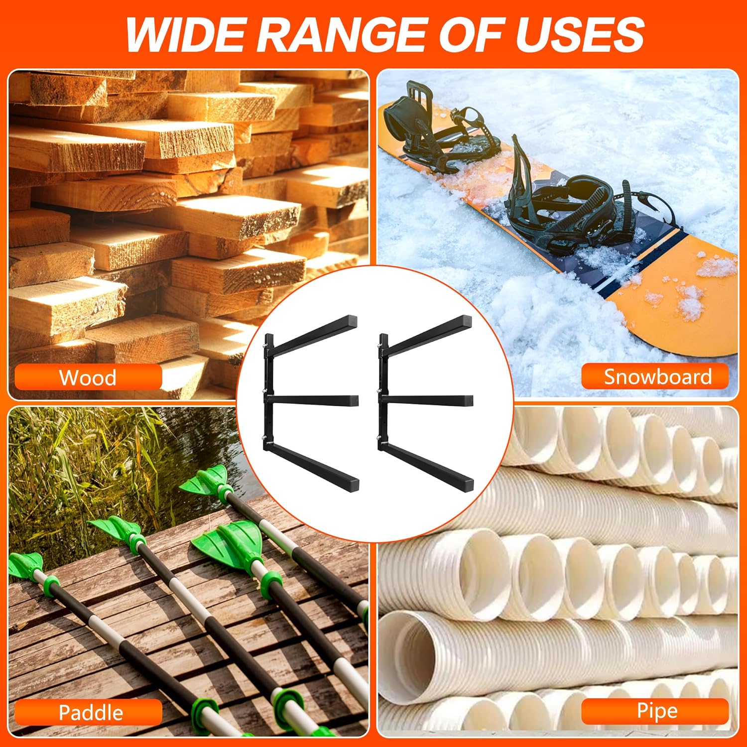 - ăWIDE APPLICATIONSăThe wood organizer for wall can be used to place long objects such as wood, pipes, skis and ladders, snowboards, golf clubs, construction tools, etc. This three-layer wood storage shelves is very suitable for your house, workshop, garage, basement, shed and even some outdoor work areas. It is a very practical storage rack.