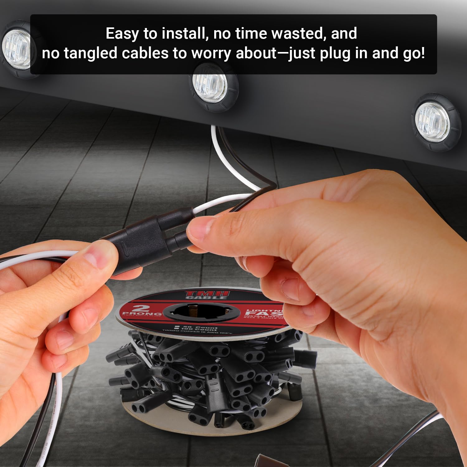 TMH 50 Count 2-Prong Wire Harness Roll Double Female Bullet Plug 18 Gauge - 6.5" Spacing for LED Marker Clearance Lights Hassle-Free Installation