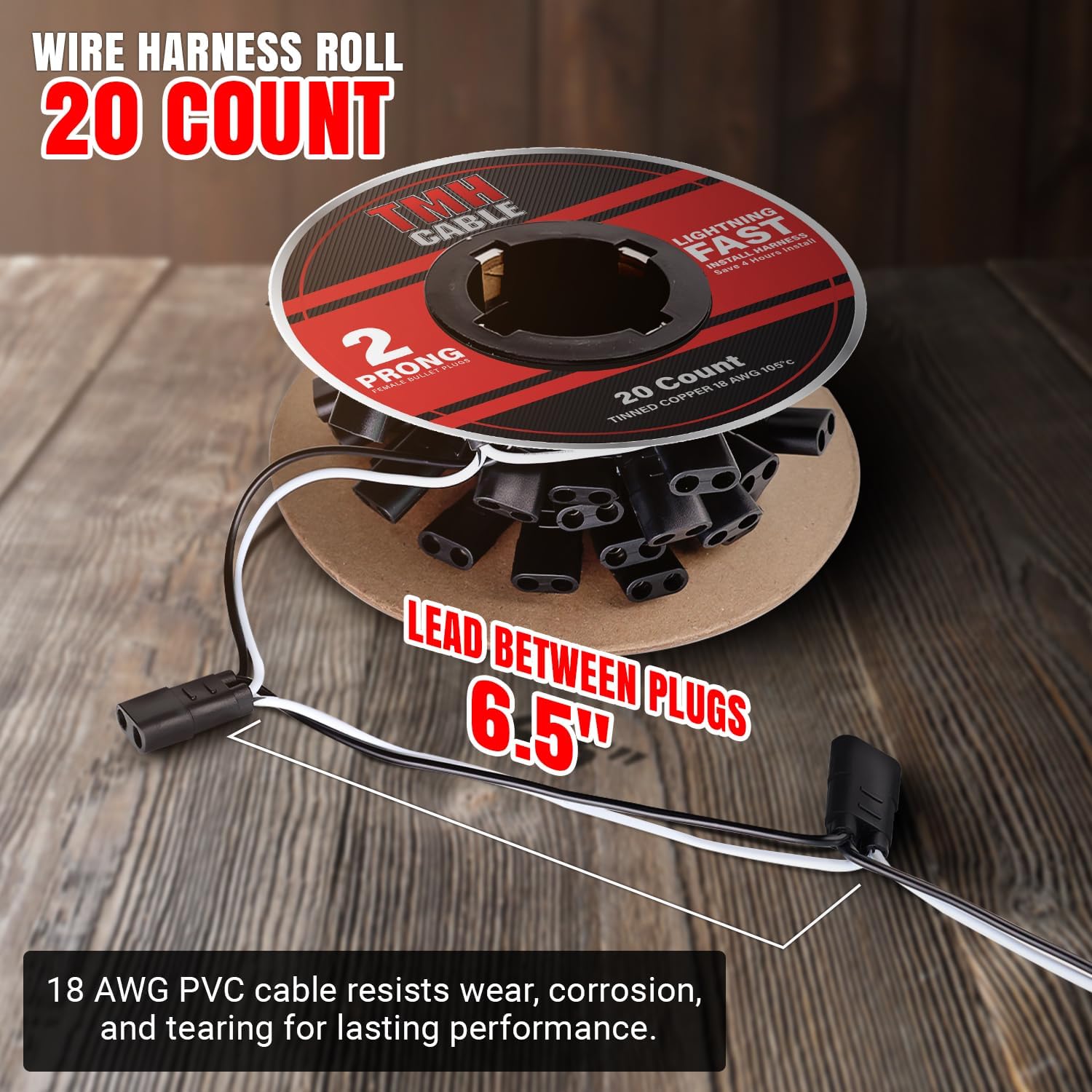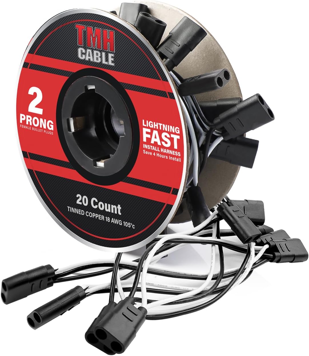 TMH 20 Count 2-Prong Wire Harness Roll Double Female Bullet Plug 18 Gauge - 6.5" Spacing for LED Marker Clearance Lights Hassle-Free Installation