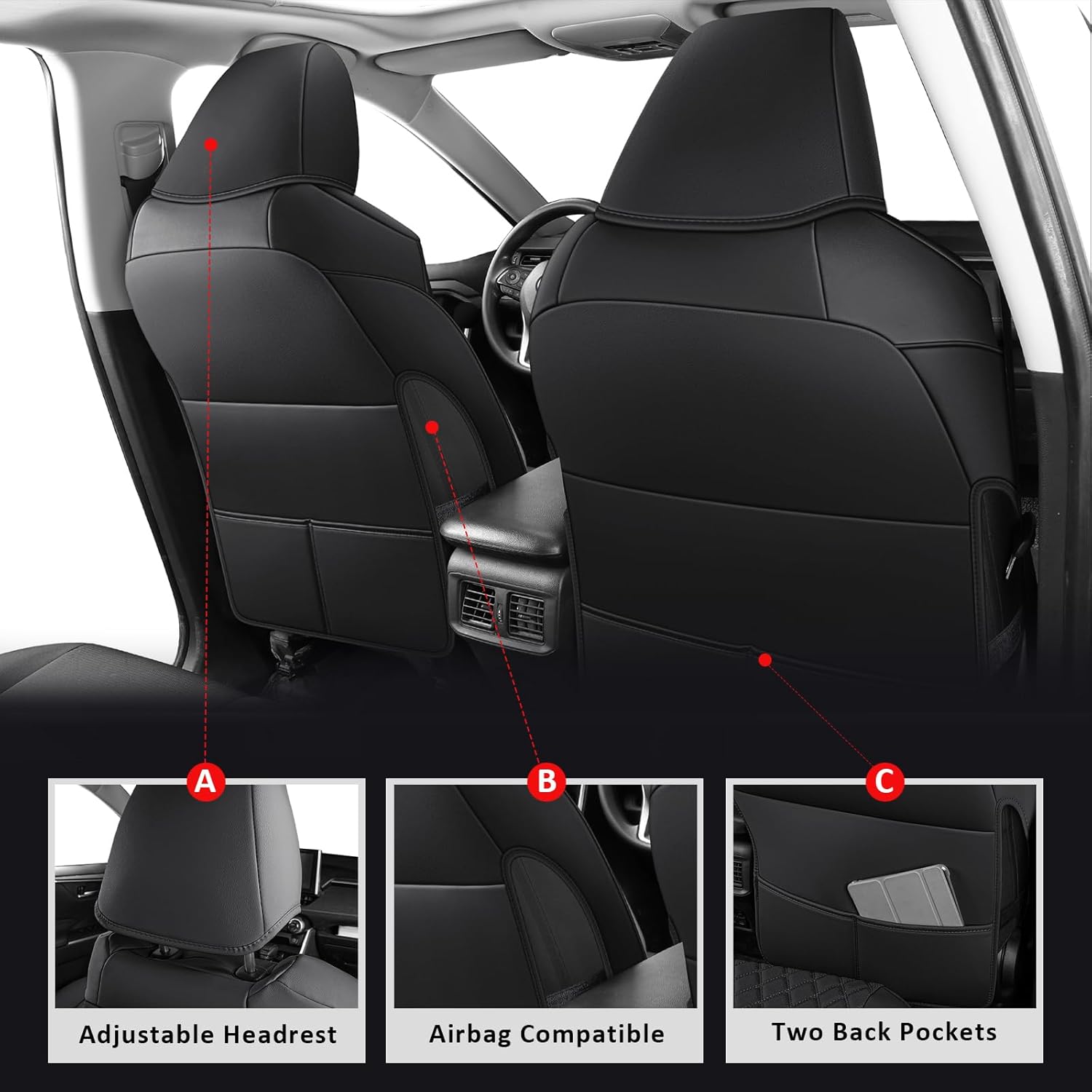 - Custom Fit: Seat Covers Compatible with 2019 2020 2021 2022 2023 2024 2025 toyota rav4 Non-Hybrid (Not for Adv & TRD-OFF,Black)
