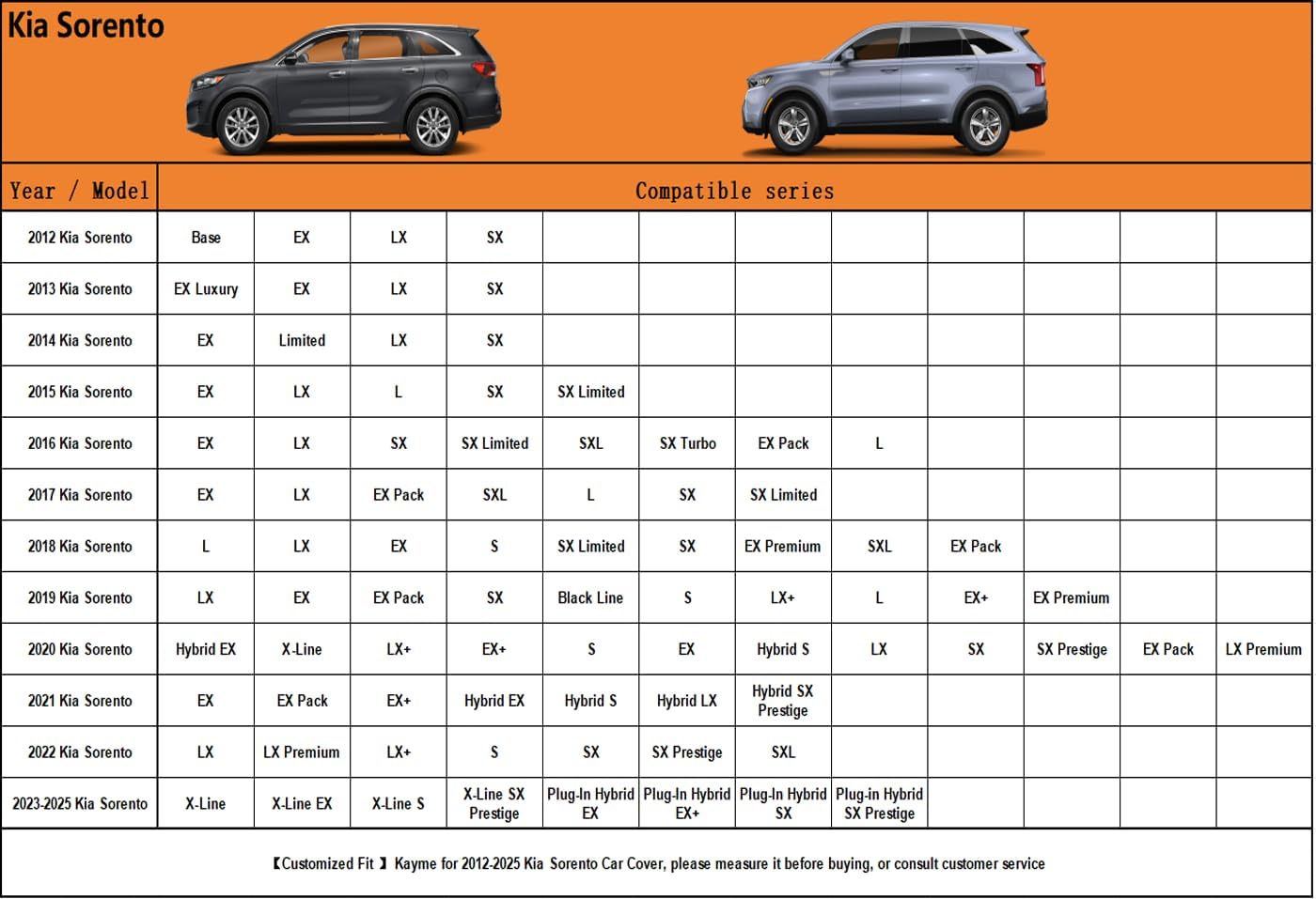 • 【Suitable for】— Custom fit for Kia Sorento (2012-2025). Come with a large enough portable bag to store your cover when you do not use