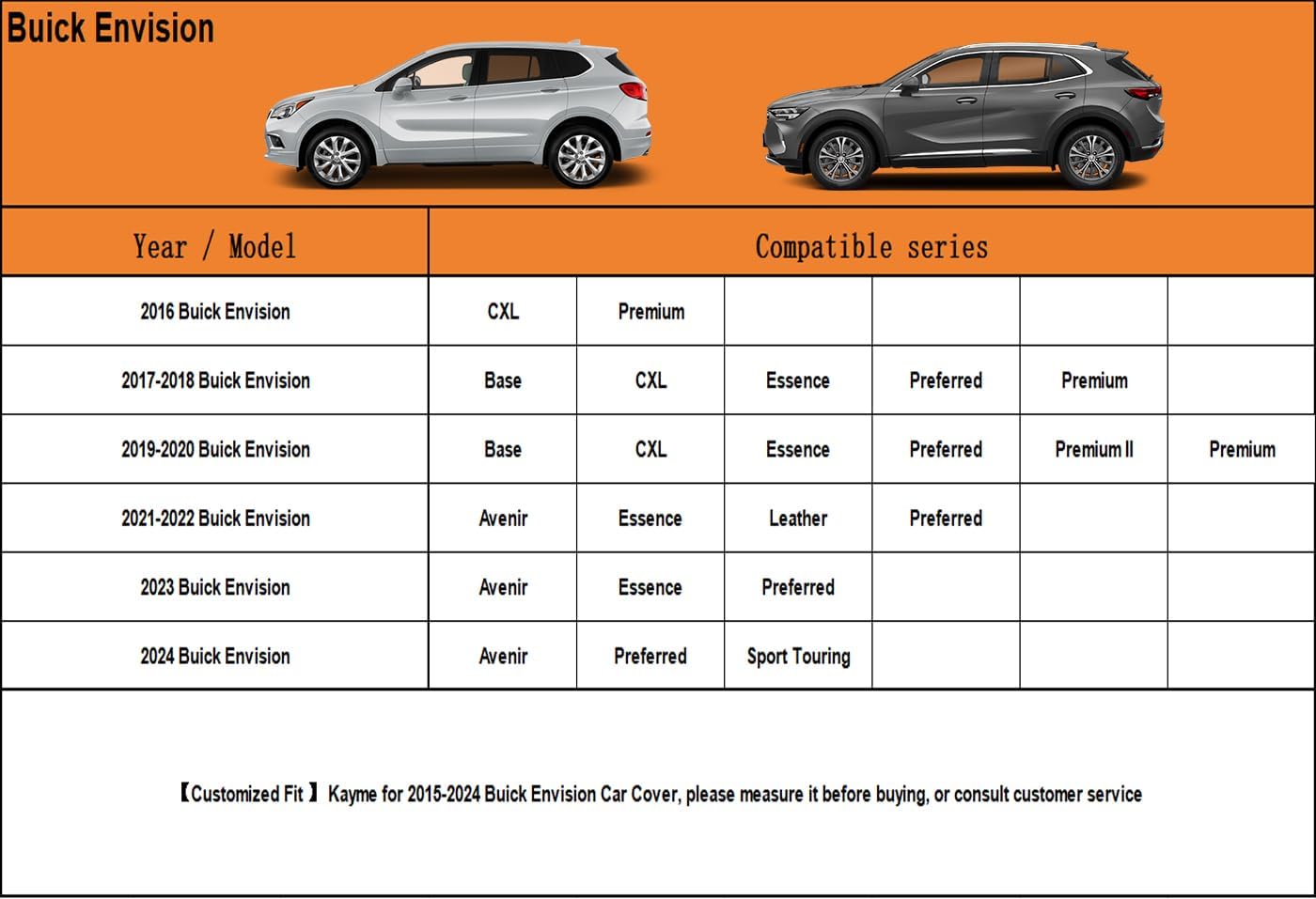 - ăSuitable forăâ Custom fit for Buick Envision(2015-2025). Come with a large enough portable bag to store your cover when you do not use