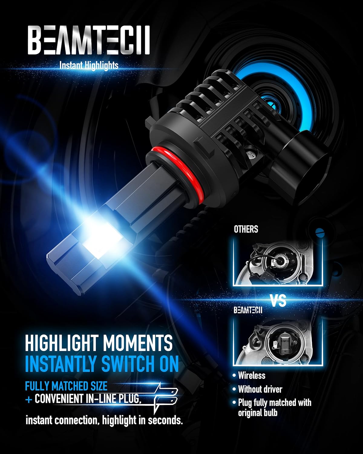 BEAMTECH 9005 Fog Light Bulb, HB3 Fog Bulb 6500K Fog Light or ATV UTV Off Road Pack of 2