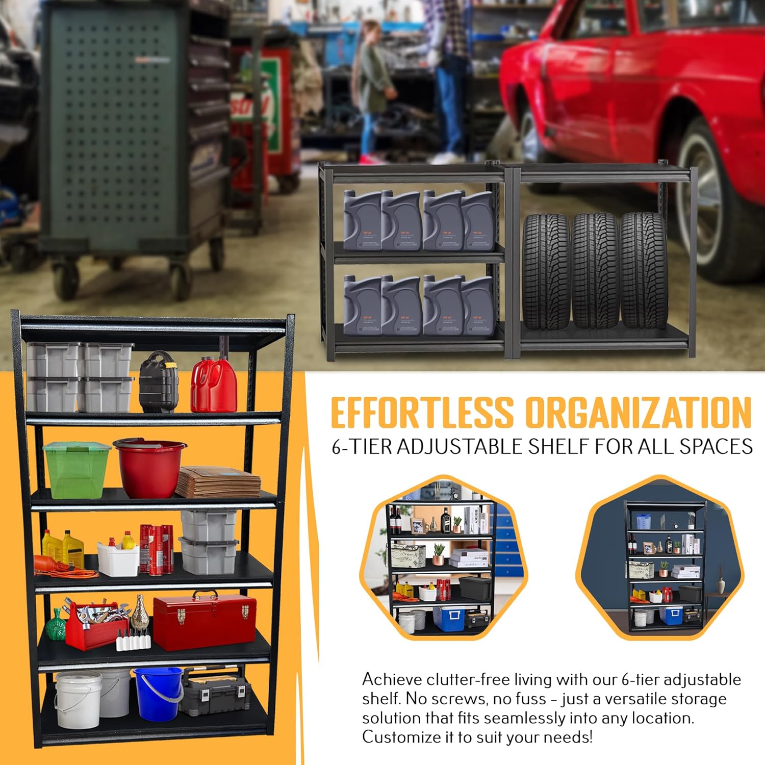 - ✅ MULTIPURPOSE SHELVES - The heavy-duty steel shelving unit can be used in many places such as your garage, kitchen, offices, warehouses, yard, living room, pantry, bedroom, basement, shed, workplace, and much more. It can also be used for many occasions such as storing your accessories, boxes, products, tools, organizers, books, cases, and much more!
