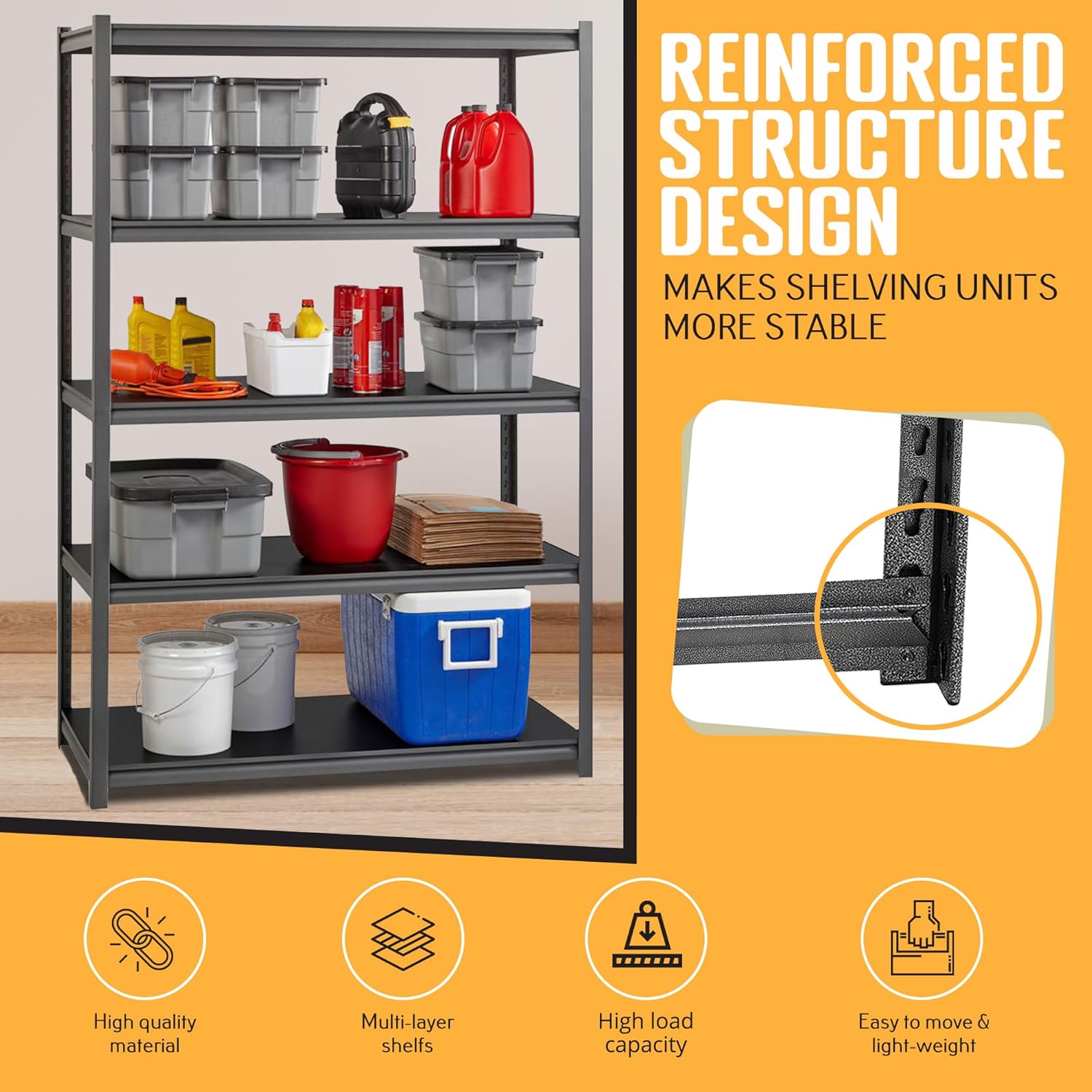 Rigma 5 Tier Garage Shelf, Heavy Duty Steel Shelving Unit, Adjustable Metal Multi-use Storage Rack, Shelves for Garage, Basement, and Industrial Warehouse Or Office (47" W X 20" D X 72" H 5-Tier)
