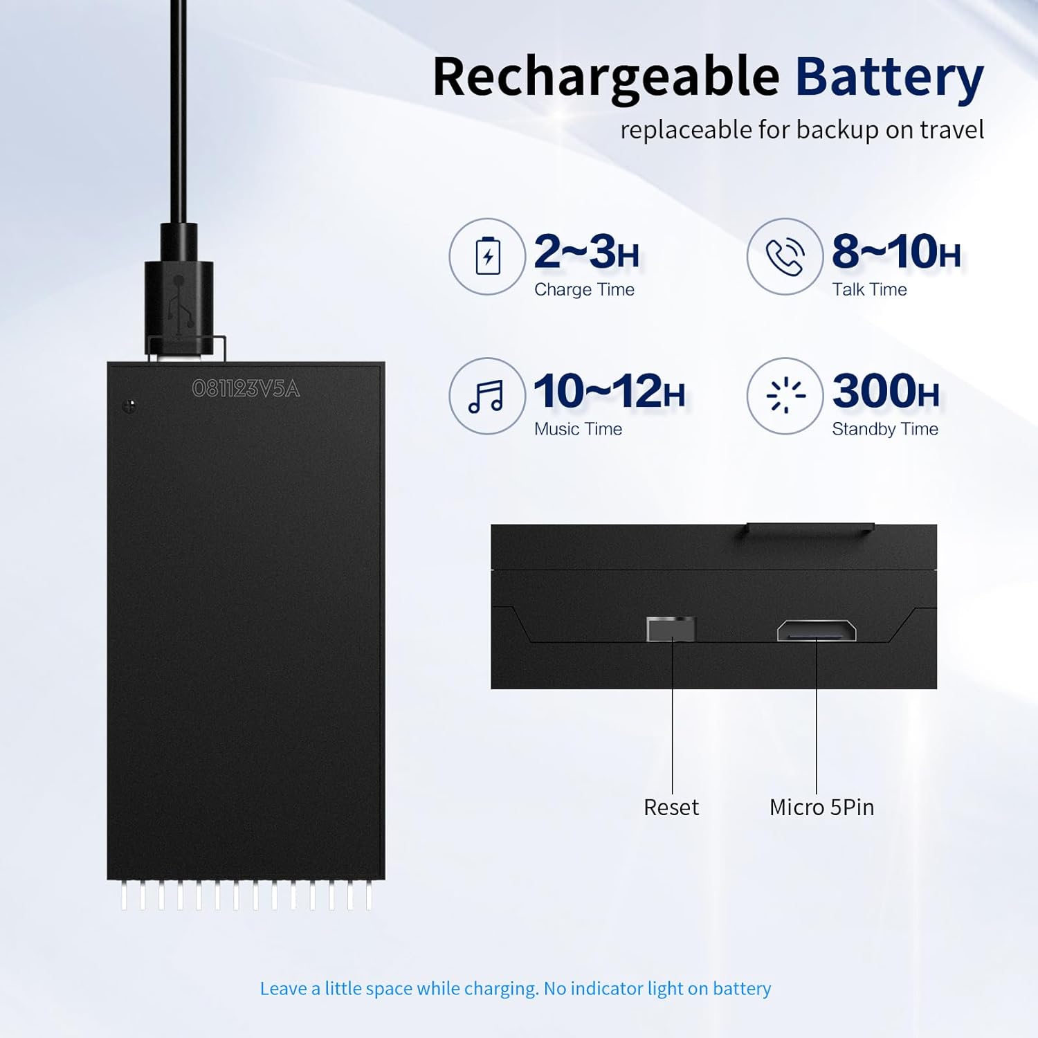 - Lithium polyer battery gives you 8-10 hours continuous song and talk, standby 300 hours. To prolong the service life of battery, please charge it regularly 1 time a month at least, do not plug it in completely while charging. If you don't use Bluetooth system for long time, battery may enter deep sleep. Just charge it about half an hour, unplug, wait half an hour and charge again to wake it up.