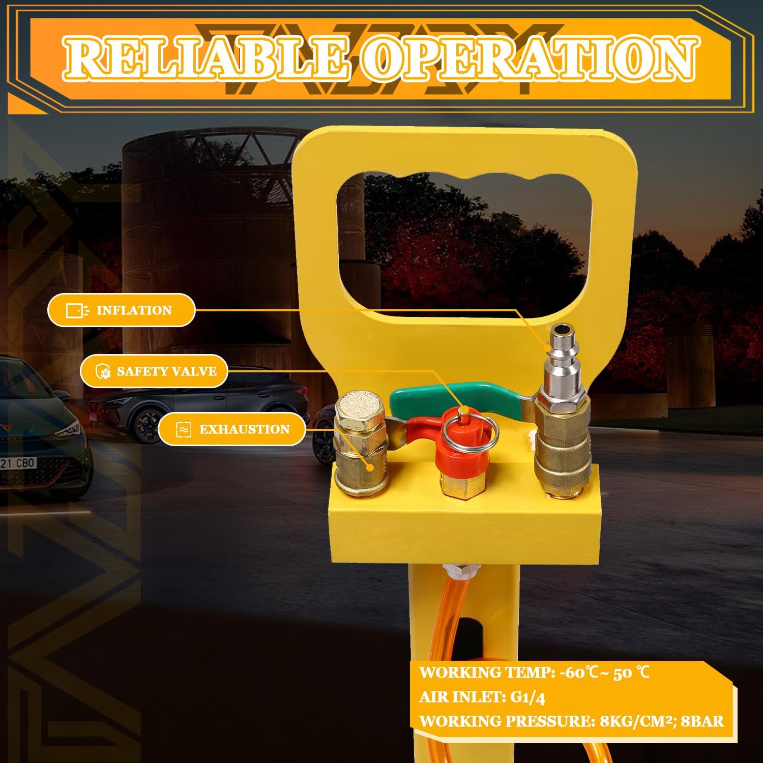 - HEAVY DUTY CONSTRUCTION - Tandagy airbag jack is constructed with high-strength steel that makes the whole body sturdy and durable. The three-layer thick and highly sealed airbag is sturdy and resilient enough to prevent leaks or scratches. Anti-rust electrostatic spraying process on the base ensure longevity and reliability.
