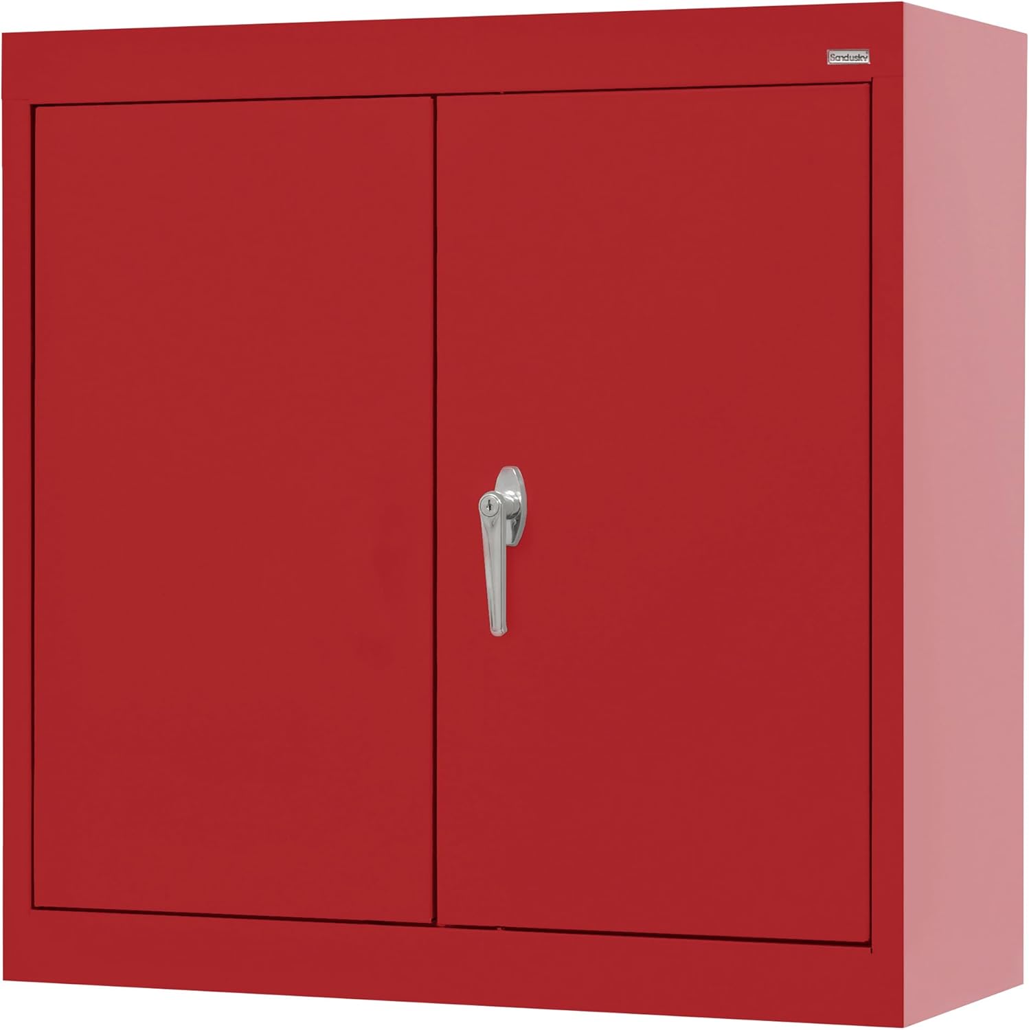 Sandusky Lee WA11301226-01 Wall-Mount Metal Storage Cabinet with Adjustable Shelf, Locking Handle, 200lb Capacity, 12" Depth x 30" Width x 26" Height, Red