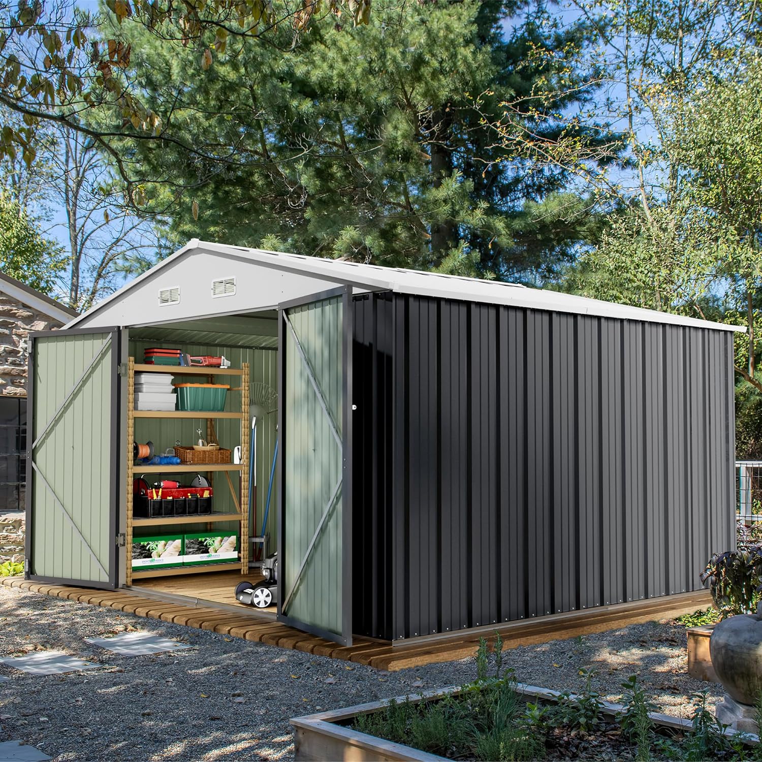- [ Extra Spacious Shed ]: Compared to traditional storage sheds available in the market, the 10x10 FT outdoor shed provides a larger area for storage, allowing you to accommodate everything you want to put away. No matter what purpose you intend to use it for, this will be your ultimate choice.