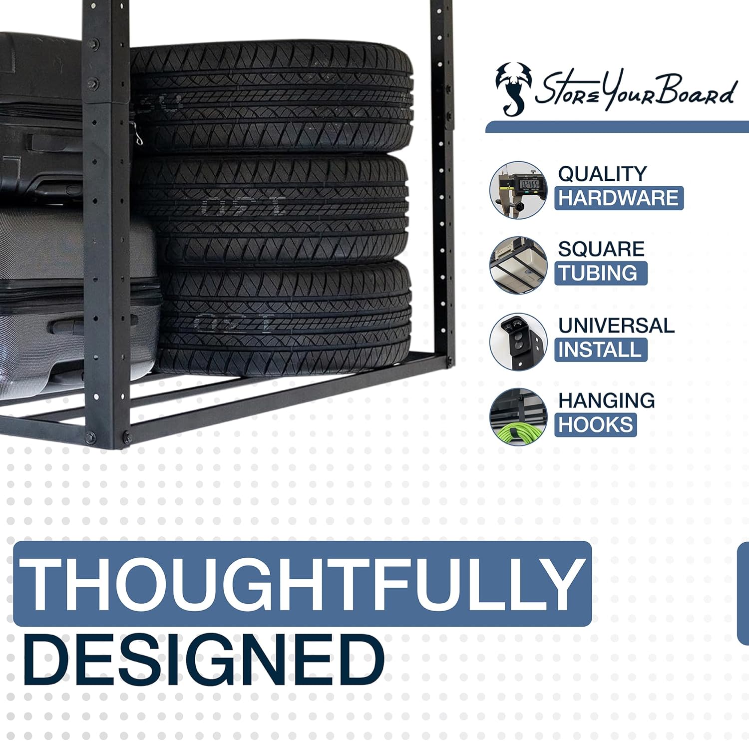 - Adjustable Height: Shelf distance from the ceiling can be set at a height of 24 inches to 40 inches to fit your space and your items stored. Build the rack to fit your needs.