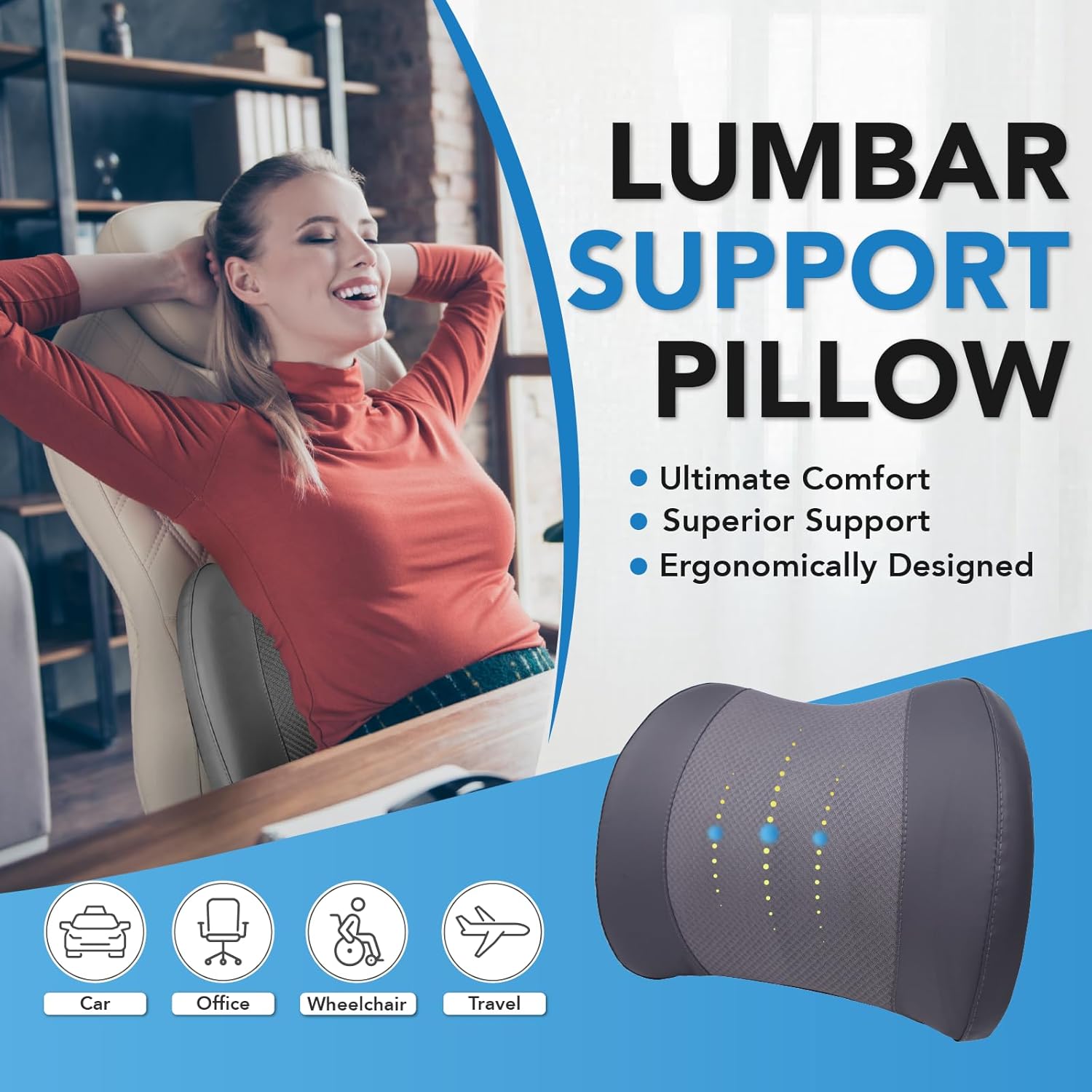 - Special Feature : Adjustable back support, Comfortable lumbar pillow, lower back pain relief, lumbar support pillow for car, lumbar support pillow for office chair Adjustable back support, Comfortable lumbar pillow, lower back pain relief, lumbar support pillow for car, lumbar support pillow for office chair
