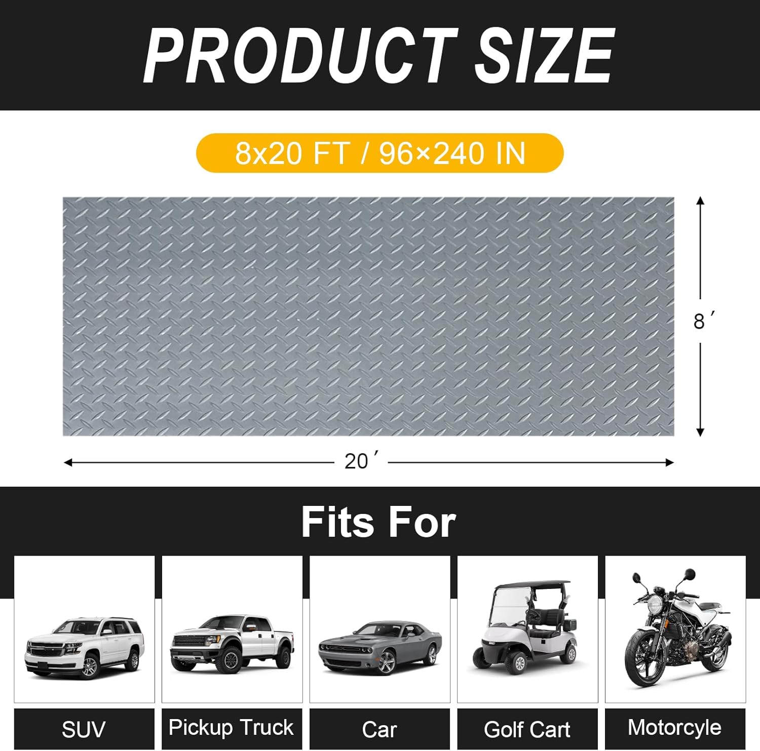 - Generous Dimensions: Boasting a spacious 8x20ft coverage, totaling 160 square feet, this floor mat is designed to accommodate a variety of garage spaces. The ample size eliminates concerns about mismatched dimensions during installation.