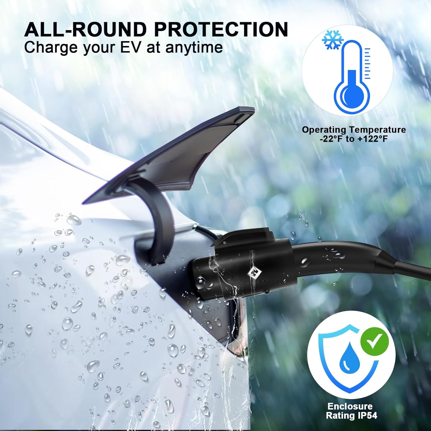 - ăFast Chargingă:This adapter to enable your EV to achieve the highest charging power between 110V-250V, with a capacity of up to 80 amps (depending on the charging station and your carâs capacity). Charge your vehicle within a few hours.