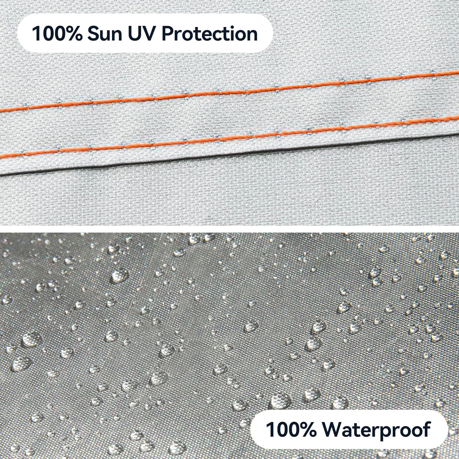 - ăPremium MaterialăOur car cover waterproof all weather is made of 7-layer material.Layer 1-2 consist of anti-UV material that help to reflect 99% of UV rays.Layers 3 is silver coating,has better sun protection than black.Layer 4 and 7 is waterproof PEVA,providing 100% waterproofing.Layer 5 is high density 210D oxford woven fabric,resistant to tears and abrasions.Layer 6 has breathable material,allowing air circulation to prevent condensation formation,preserving the car's finish.