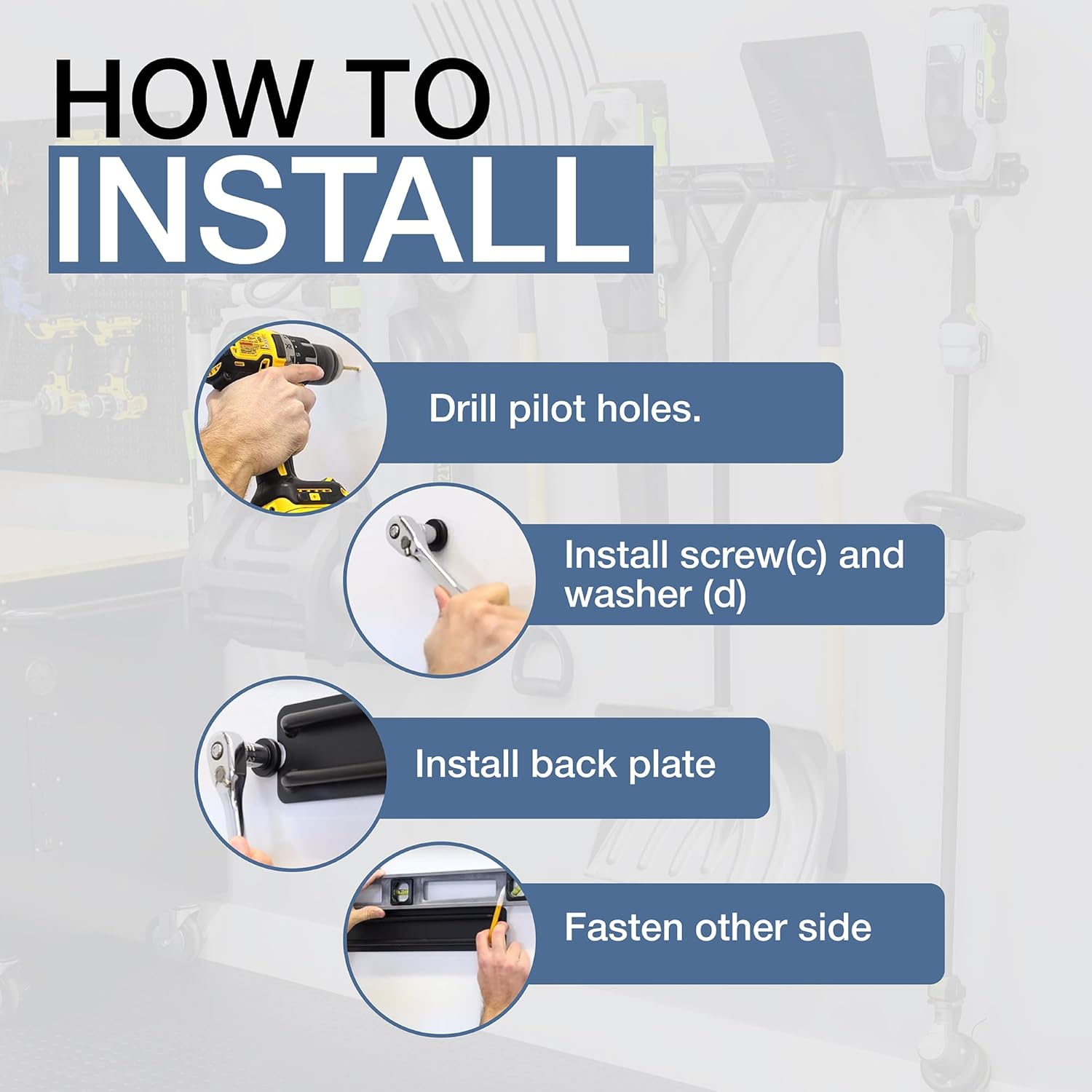 - Easy to install: Designed for quick and easy installation into standard 16" wall studs. Includes all necessary garage hooks, mounting brackets, and hardware for a secure setup.