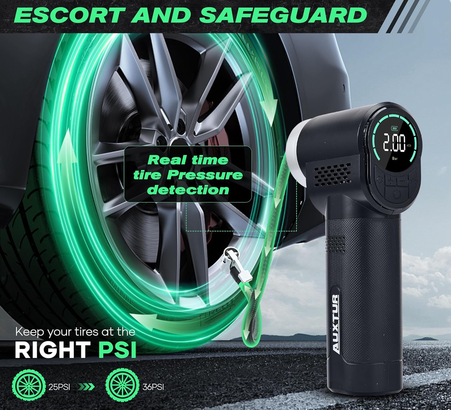- Reliable and Safe: The auto shut-off function adds convenience and safety, automatically stopping inflation when the desired tire pressure is reached. Enjoy peace of mind knowing that you won't overinflate your tires.
