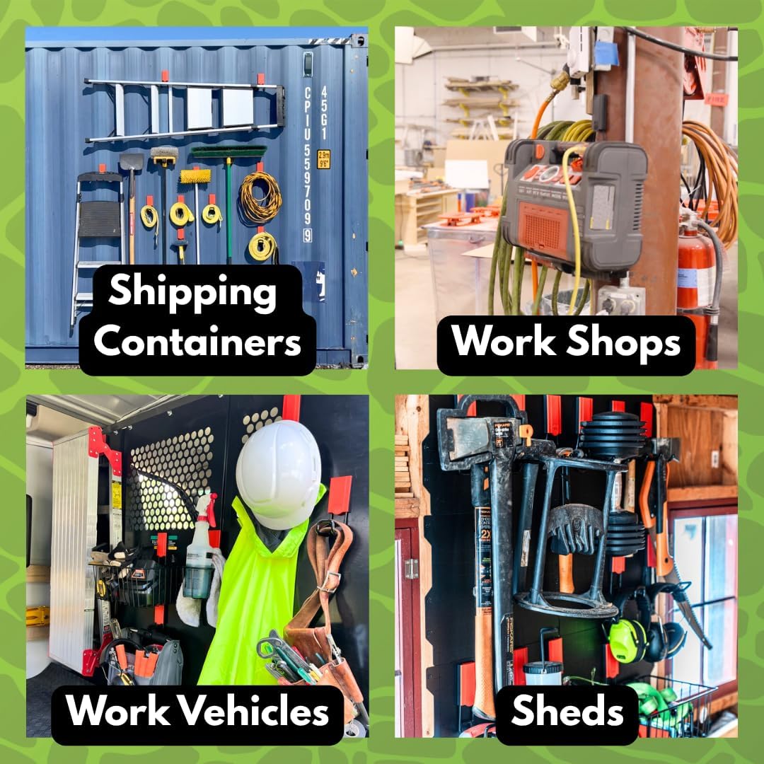 - VERSATILE AND READY FOR WORK: Our magnetic garage hooks are ready to work the minute you open the box. With a patented “easy-off” release mechanism that snaps onto steel surfaces and easily disengages so you can comfortably adjust where you want it. Our tough, durable 3" and 4.5" open hook 4 pack helps you free up valuable space as a garage or shed organizer