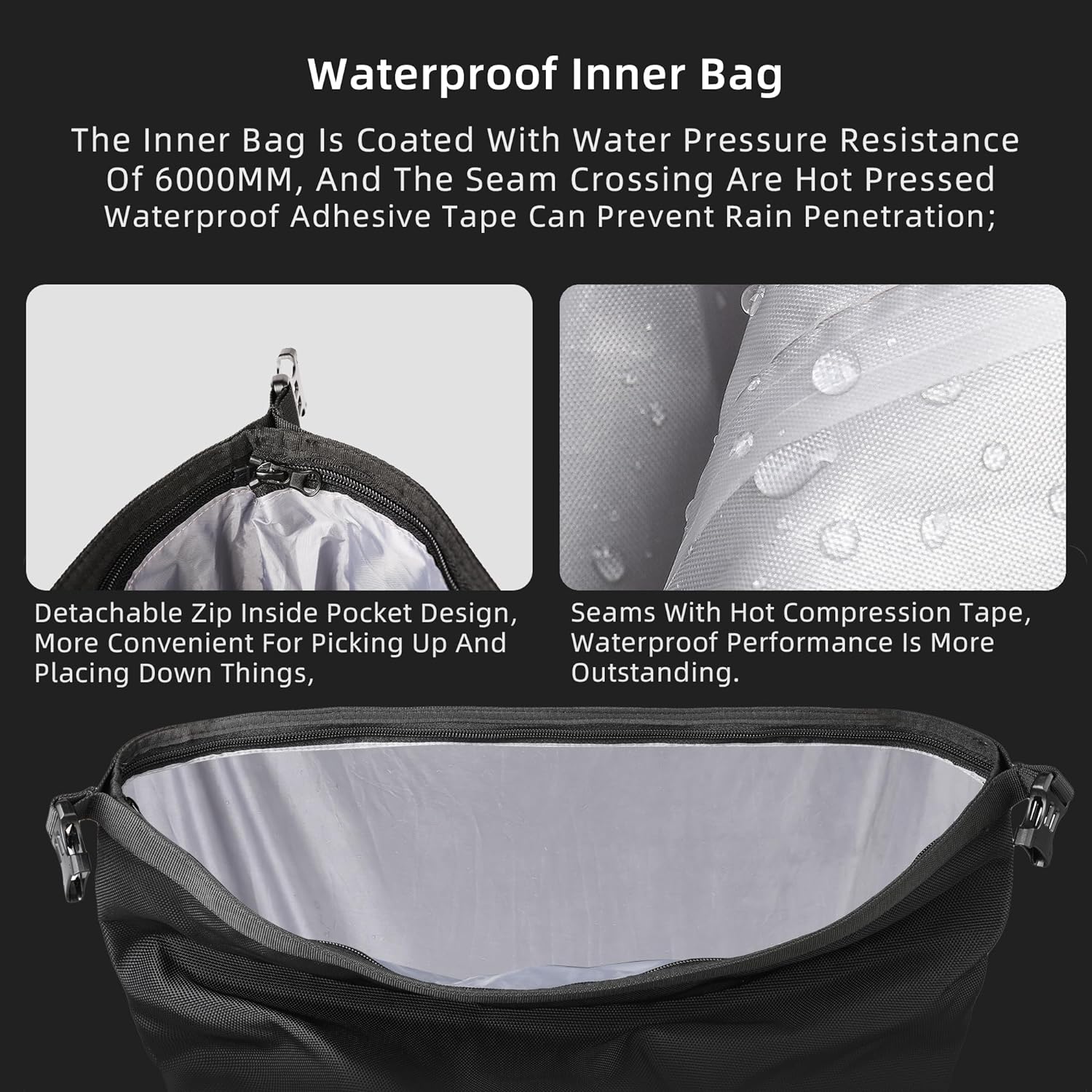 - 【Waterproof & Anti-skid】 Thicker and higher density 1200d waterproof material. the inner bag is coated with water pressure resistance of 6000mm, and the seam crossing are hot pressed waterproof adhesive tape can prevent rain penetration. Inner supporting pp boards are linked by hinges for easy folding and stroage. Anti-slip leather on the part that fits the frame to prevent the frame paint from being worn away.