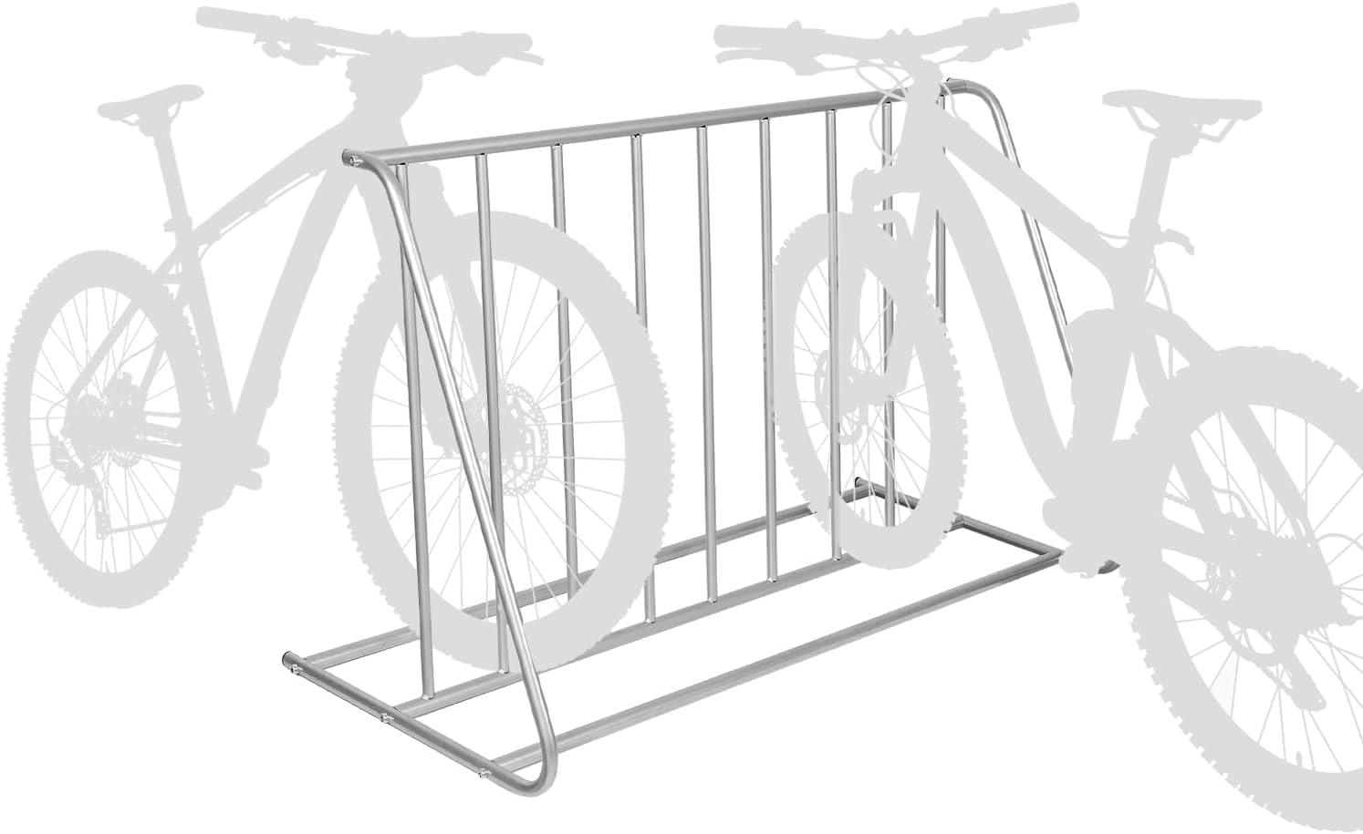 - 6-bicycle floor standing silver-toned metal holder provides dual-sided indoor or outdoor parking for bikes **Some assembly required**