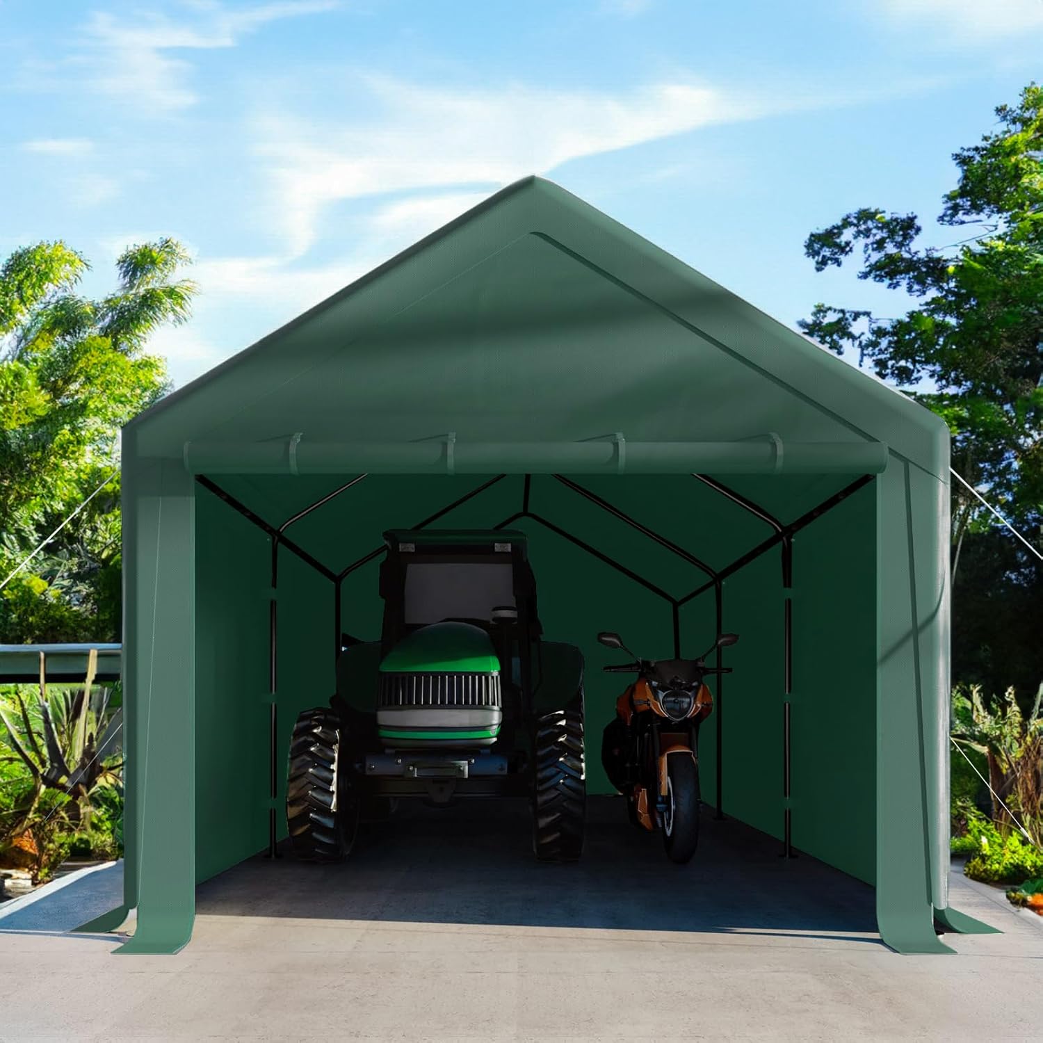 - 【Carport Canopy 10x20 Heavy Duty for Strongly Against Wind】:Our all-season carport cover boasts 180g 3-layer PE fabric, waterproof, UV-resistant, and tear-resistant. The canopy cover is firmly fixed on the frame by elastic balls and the support foot has a stable foundation, you can rest assured that your vehicle can be well-protected.