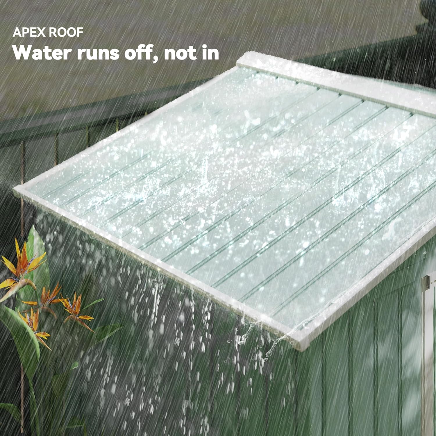 - Sloped Roof Shed: A sloped and striped roof keeps our backyard garden shed from holding on to too much weight during rainfall, preventing possible damage and keeping it intact during all seasons.