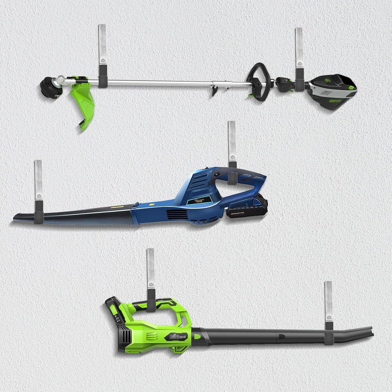 - Heavy Duty Garage Hooks: The garage wall hook comes with two pre-drilled holes and 2 set screws & anchors for easy installation, fitting to most wall surfaces. Just nail the wall tool organizer, solving the bulk storage and saving wall space.