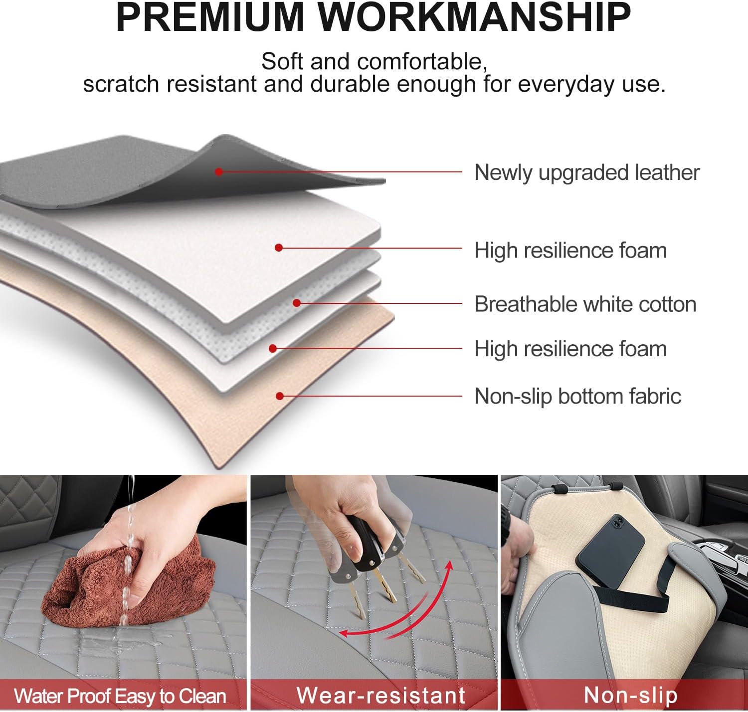 - Easy to Install and Clean: Our front car seat covers fit most car models and include clear installation instructions. Whether your vehicle is an SUV, sedan, or truck, our seat covers are installed easily. It's easy to clean by just wiping it with a towel.