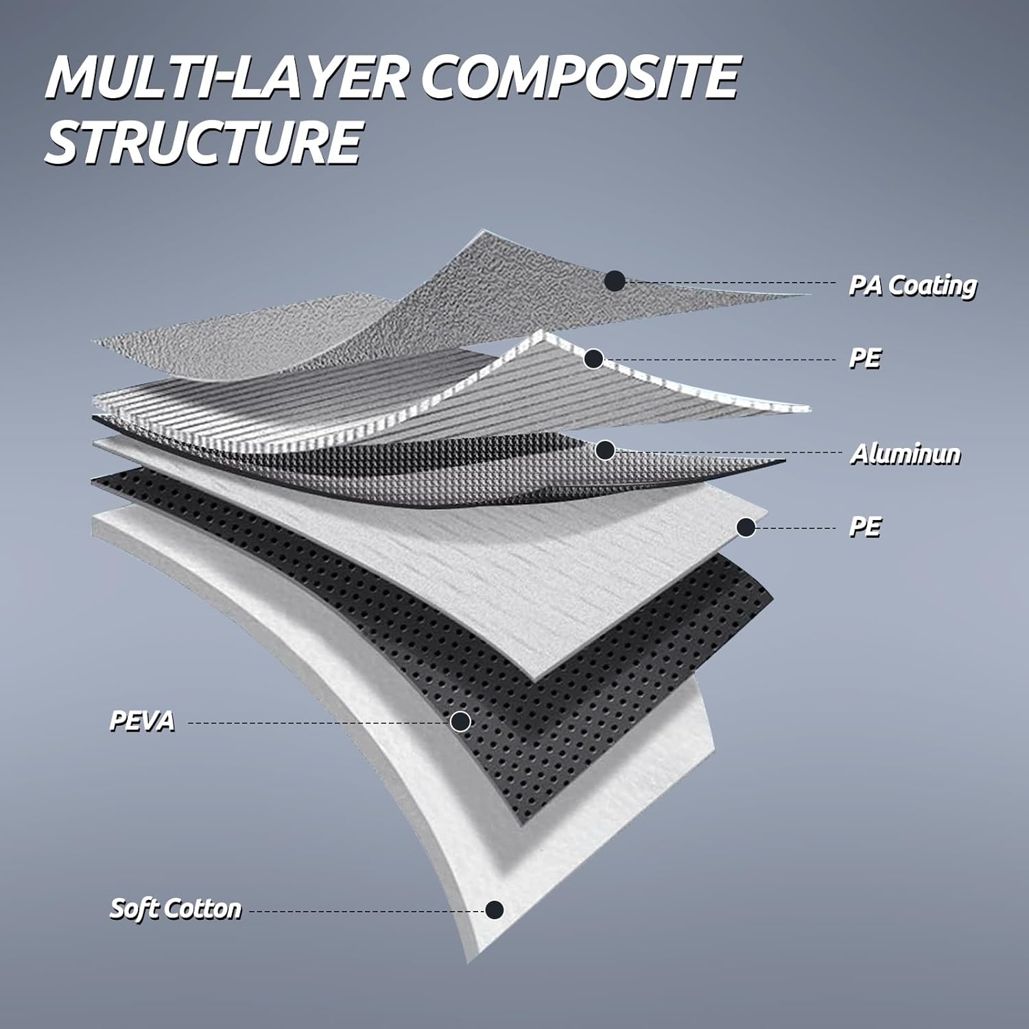 - ăHigh-Quality MaterialăMigavne car cover features a multi-layer composite material design. Layer 1 is PA coating, providing 100% waterproofing. Layers 2 consist of PE, enhancing breathability and maintaining suitable interior temperatures. Layer 3 is an aluminum membrane that reflects 99% of UV rays, reducing UV damage. Layers 4-5 are PEVA material, with strong tear resistance to maintain integrity in harsh weather. Layer 6 is soft cotton, effectively safeguarding the car's paint.