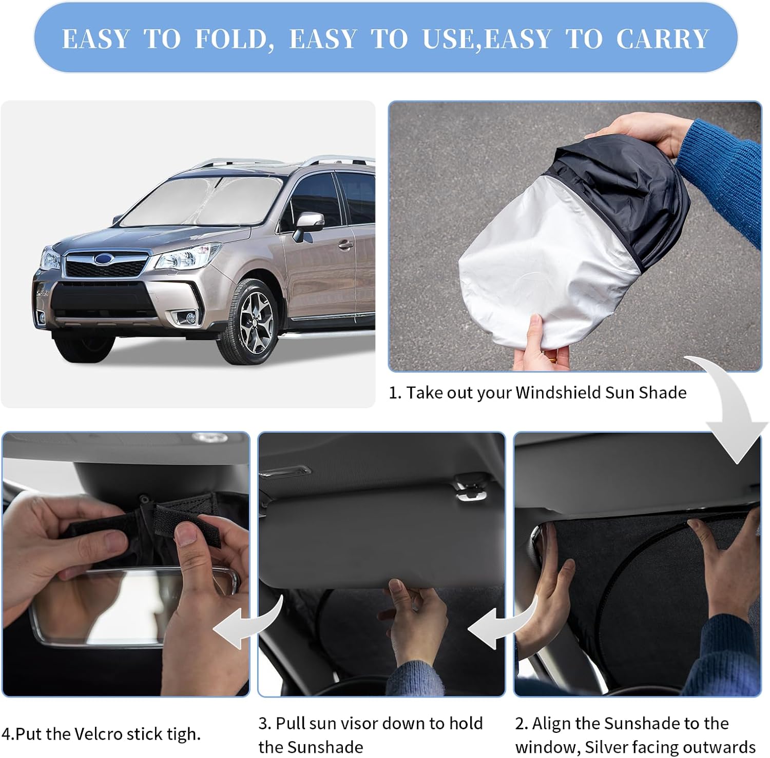 - ăYour Favorite Design ăThe front window shade easily pops out and folds back. Storage pouch is included for easy portability,you will love this designïŒIt is not hard for you to fold.Great heat shield interior+accessories for your car.