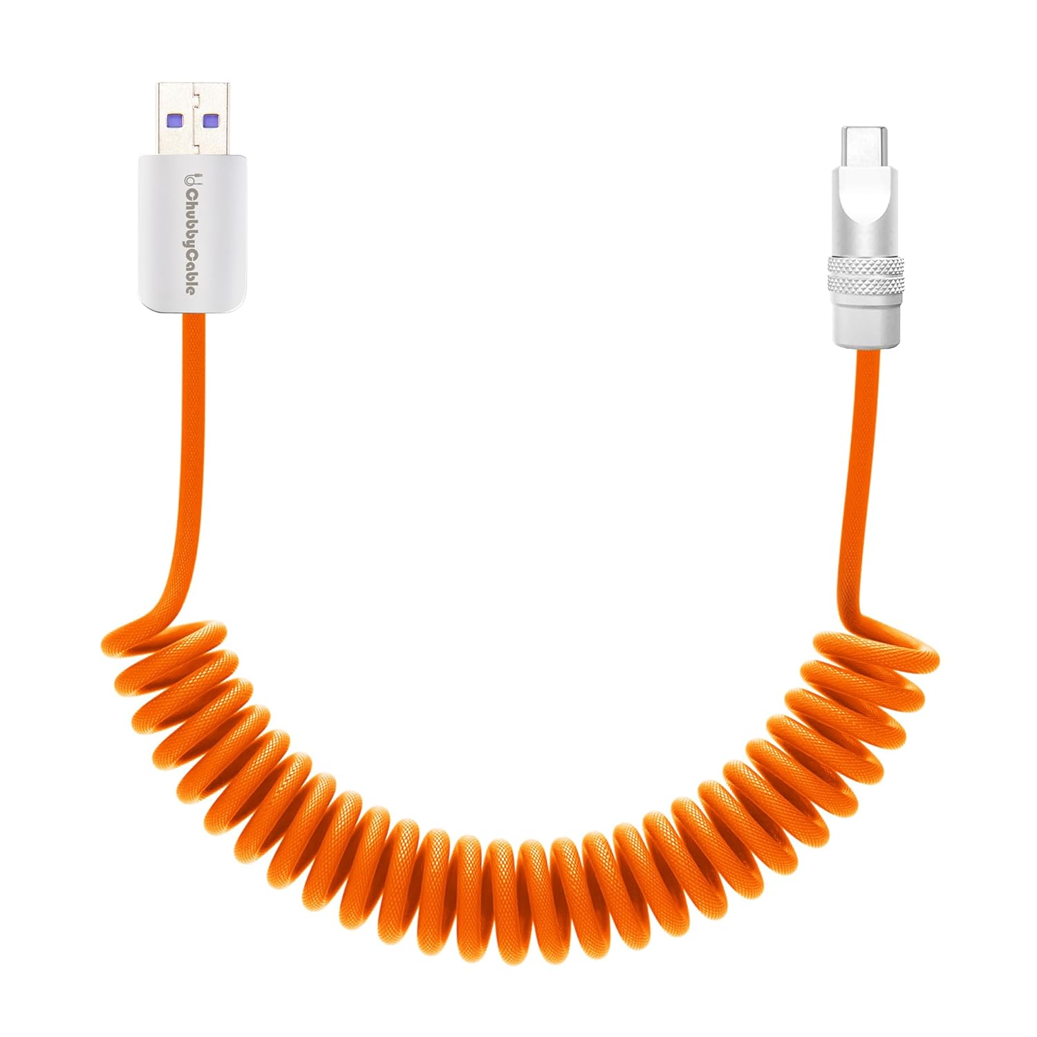 - BUILT TO LAST: This ChubbyCable coiled usb c cable is engineered to withstand the daily wear and tear of your active lifestyle. Say goodbye to flimsy and easily damaged type c charger, providing you with a reliable fast charging and data transfer solution that won't let you down; NOTE: The cable can be extended up to 2.3ft in length and can be freely scaled within this pulling force range, but if it exceeds the threshold, the elasticity of the cable itself will be destroyed