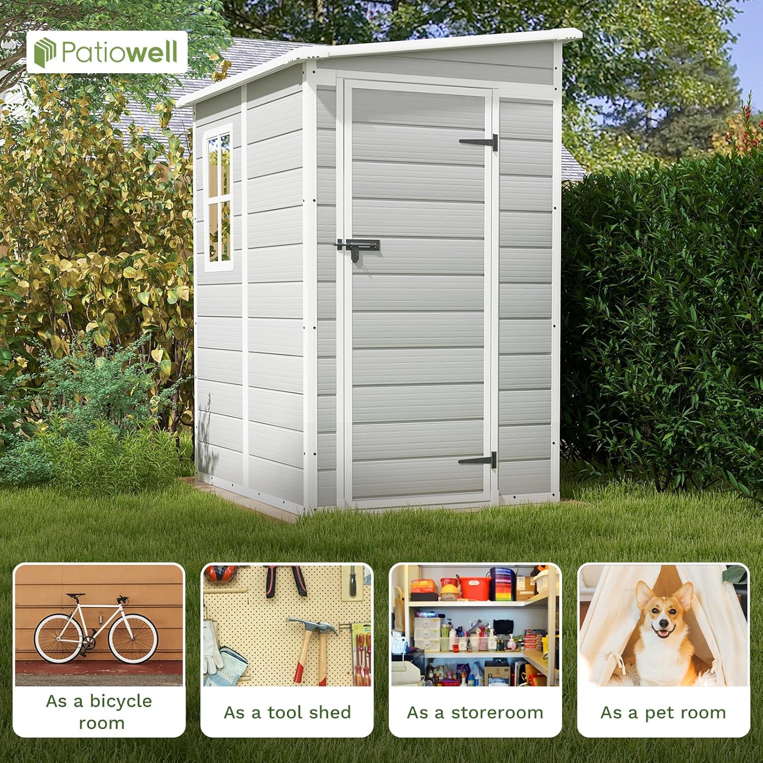 Patiowell 5x4 FT Outdoor Storage Shed, Resin Storage Shed with Floor & Lockable & Window Door for Patio Furniture, Garden Tools and Bicycle, White & Grey