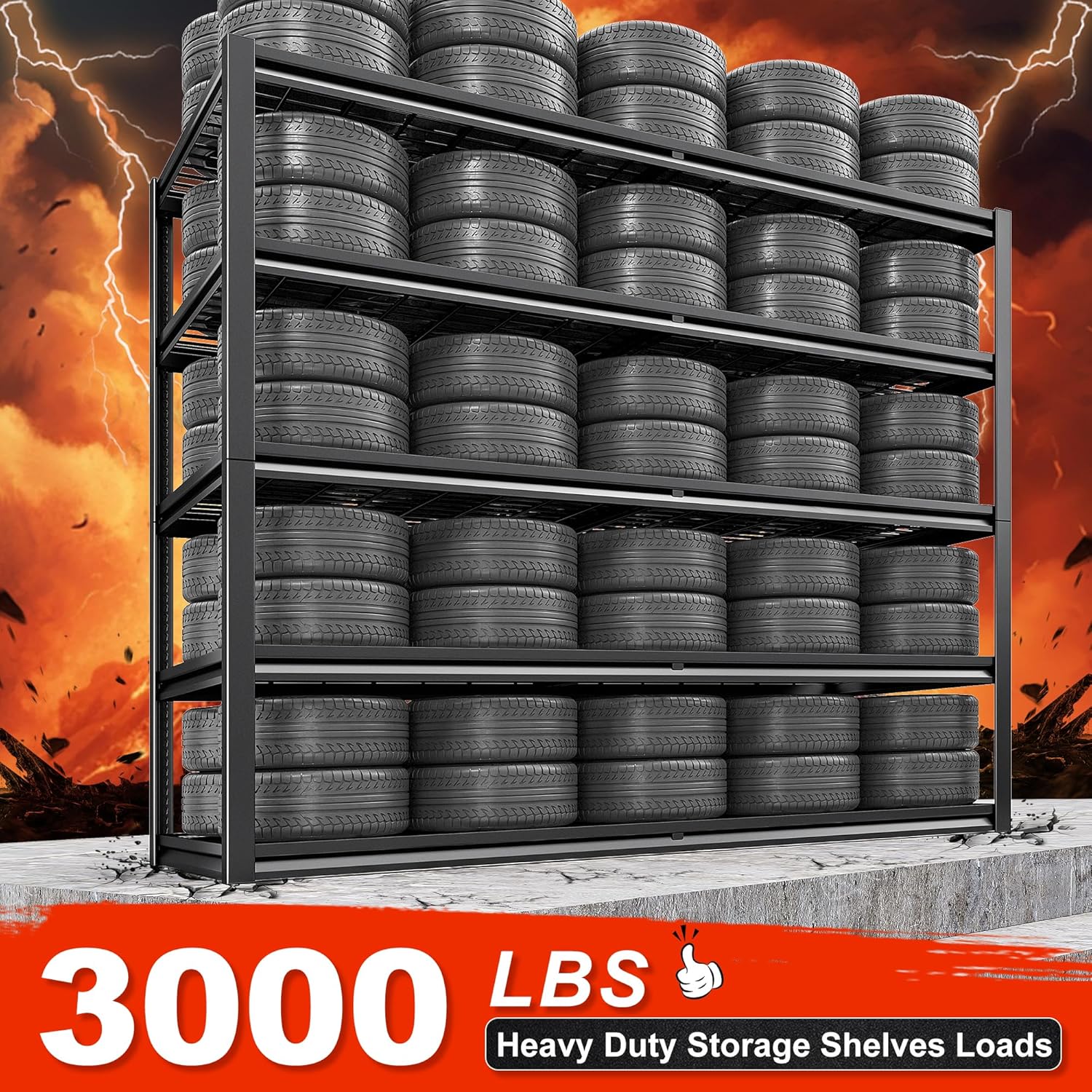 - ă3000LBS Capacity Heavy Duty Garage Storage ShelvesăREIBII heavy duty shelving unit has thickened double metal legs. Made of high-quality metal, each solid thickened metal shelving with 8 big ribs beneath can hold up to 600 lbs, with a total bearing capacity of 3000 lbs, which makes industrial garage shelves heavy duty more stable and solid than normal metal shelves for storage, and more stuff can be stored