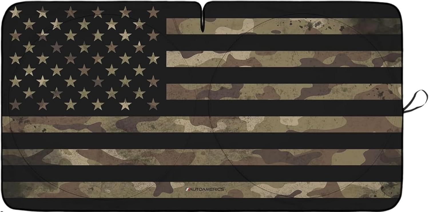 Autoamerics JeepWrangler Dark Camo Flag 1-Piece Windshield Sun Shade Foldable Car Front Window Sunshade - Best Heat Shield Reflector Cover - Blocks Max UV Rays & Keeps Your Vehicle Cool