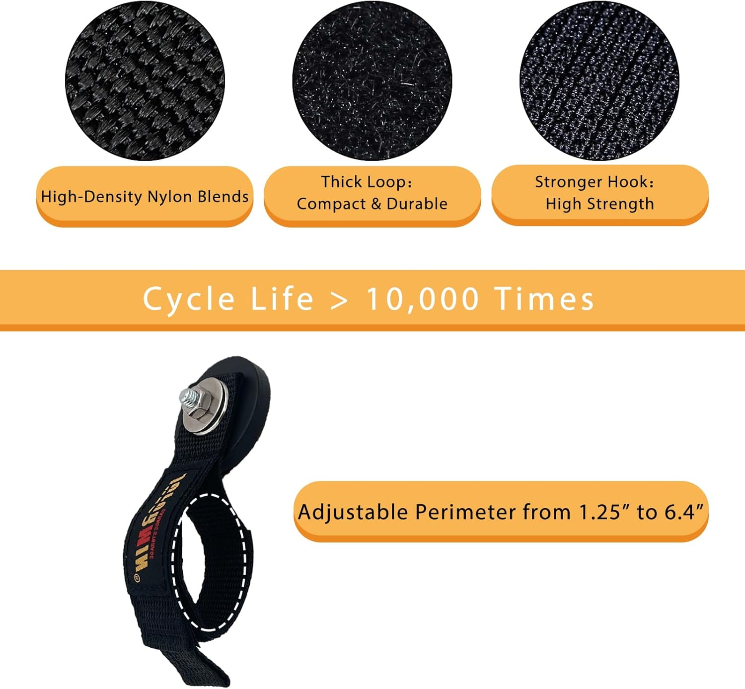 - Superior Storage Straps: The storage strap made of high-density nylon blends with reusable hook and loop fasteners. The strap with adjustable perimeter from 2.35”to 6.5”, which is perfect for your various needs