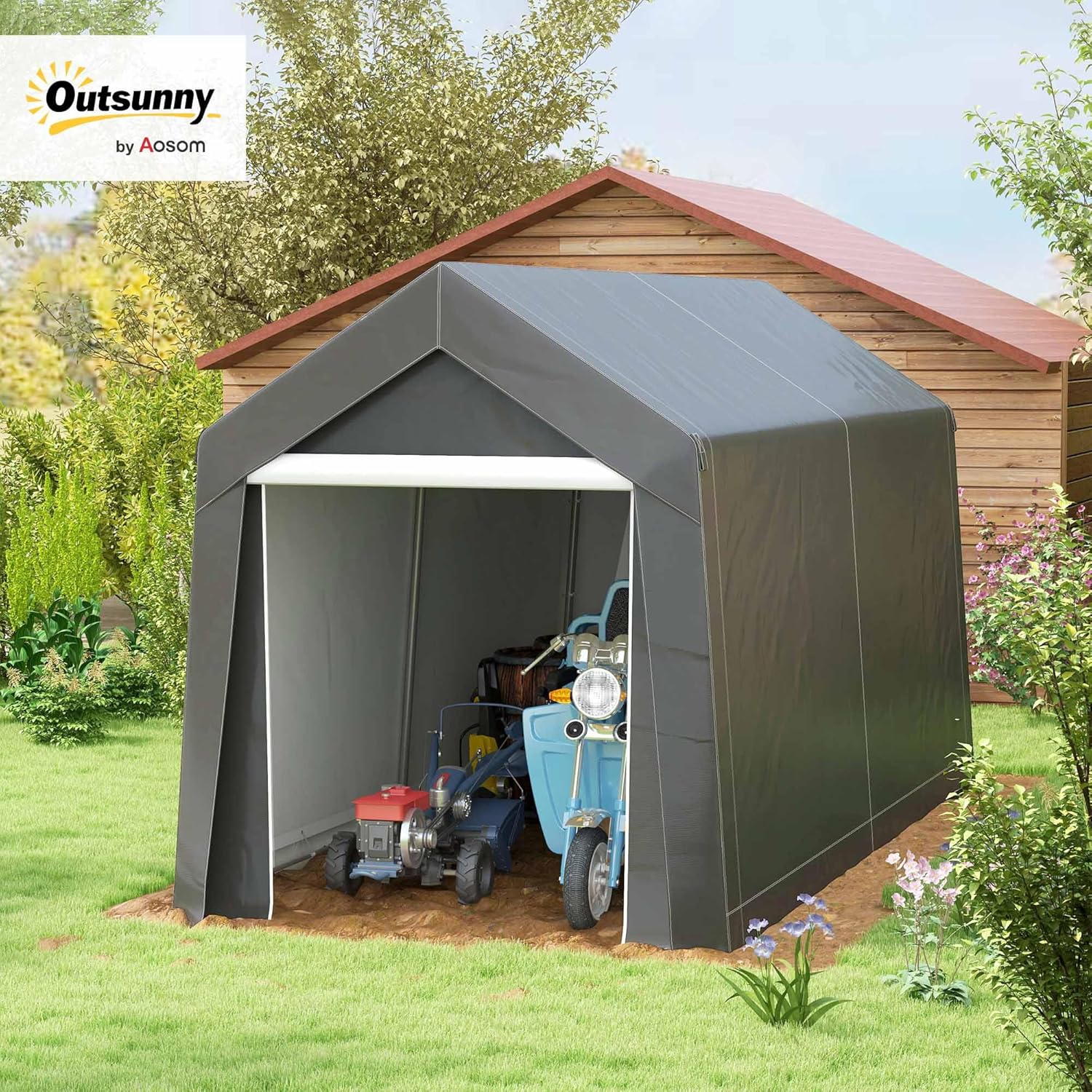 Outsunny 7' x 12' Portable Storage Shed Shelter, Heavy Duty Outdoor Shed, Waterproof Garden Storage Tent with Ventilation Window and Roll-up Zipper Door for Bike, Motorcycle, Garden Tools, Gray