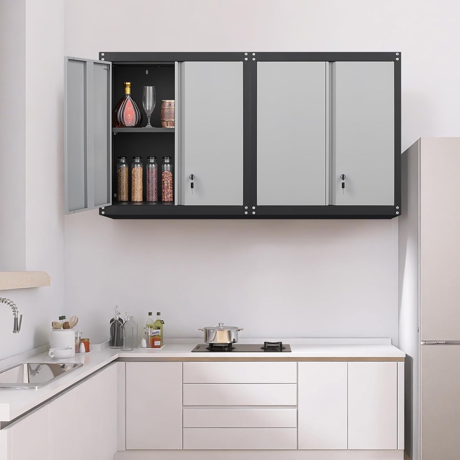 - ăQuality Wall Cabinet for GarageăThis metal wall cabinet is made of thickened alloy steel plate, built to last with strong and durable structure