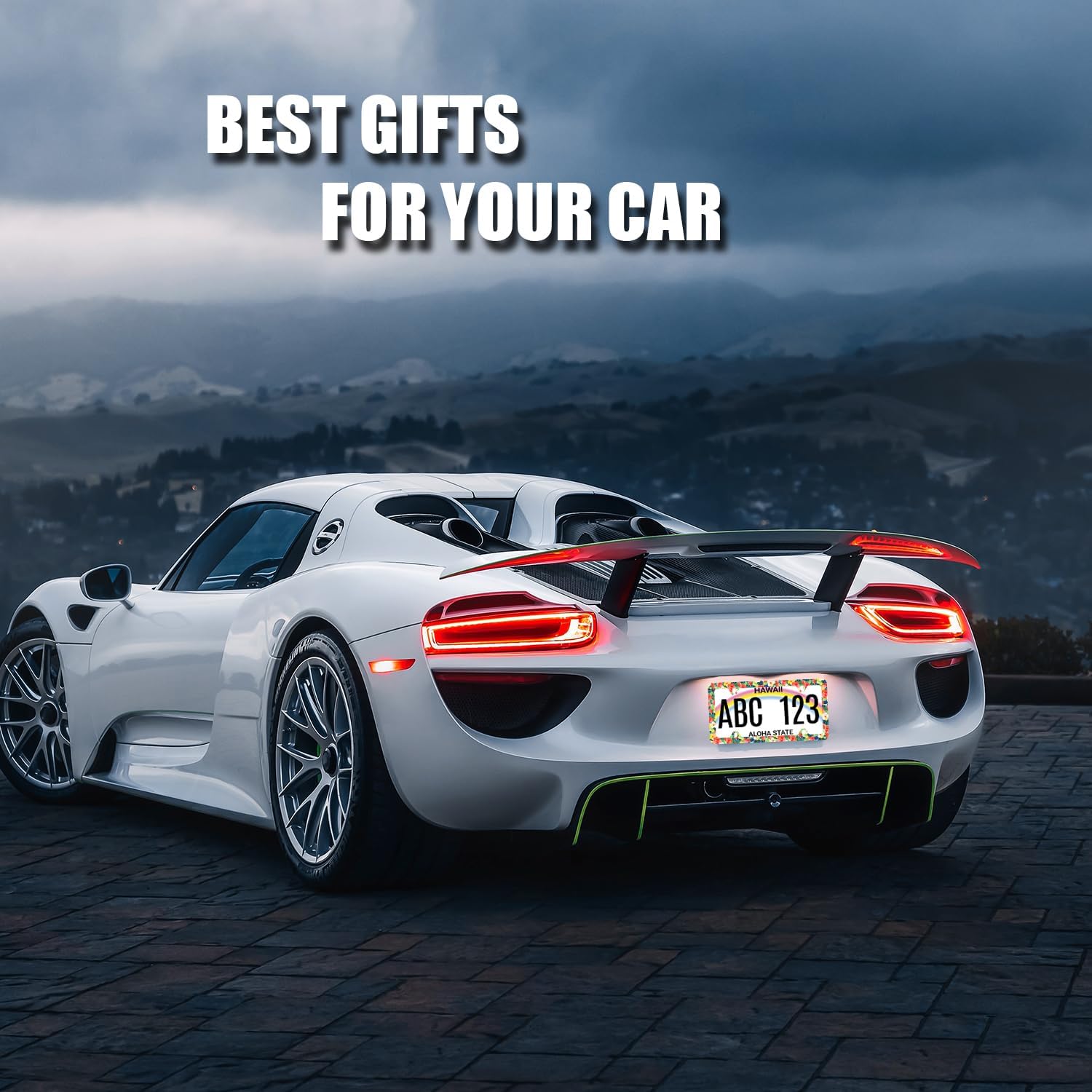 Pink Yellow Hibiscus License Plate Frame Hawaii Floral Flowers License Plate Holder Colorful License Plate for Car Decoration Stainless Steel Car Accessory with Screws Women 12.3" x 6.3"