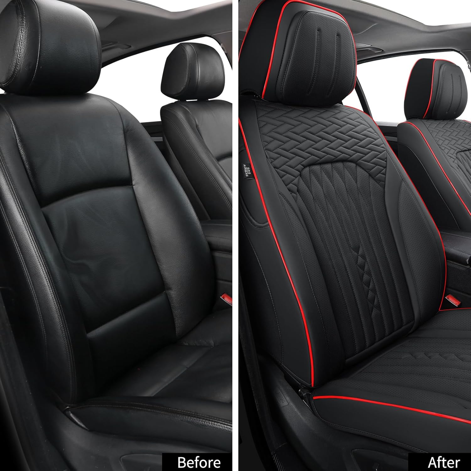 - â¨ULTIMATE SEAT PROTECTOON:Shield factory seats from scratches, UV rays, pet damage, and wear. Tough, fade-resistant synthetic leather preserves your carâs resale value while built-in airbag slots ensure 100% safety compatibility.