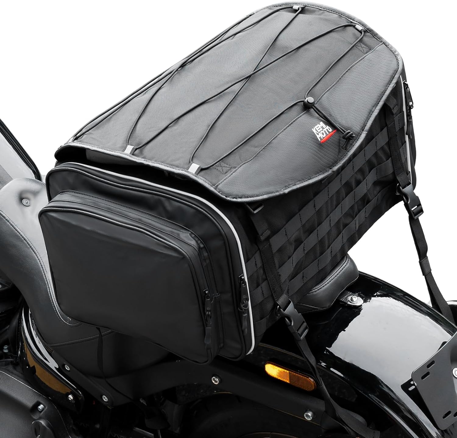 - Versatile Use: With four straps and buckles, this motor pannier bag is not only easy to install but also compatible with various motorcycle types, such as large ADV touring bikes, medium street bikes, and urban retro cruisers. Installation methods vary depending on whether the motorcycle has a tail rack. In addition, this tail bag also comes with two straps that can be used for backpack purposes.