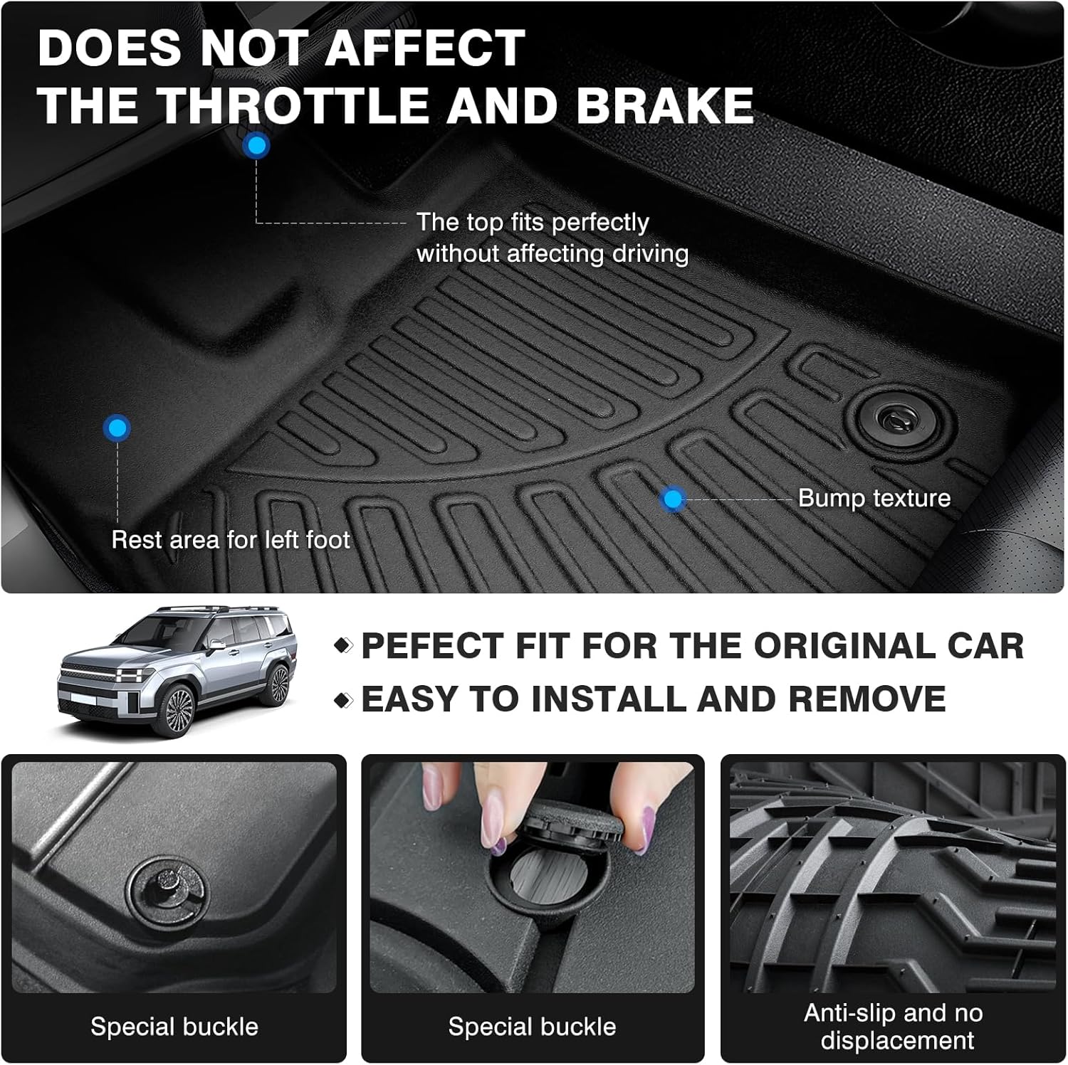 - ăCrafted for Santa Fe Exclusivityă Introducing premium floor mats, that seamlessly integrate with your 2021 2022 2023 Hyundai Santa Fe 5 Seats(ONLY Hybrid) through precise 3D-scanned design, eliminating the need for trimming.