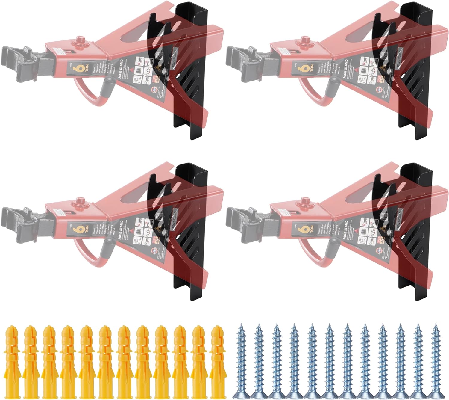 - Jack Stand Storage Rack Comes with 4 Wall Mounts, 8 Drywall Anchors and Screws for Easy Installation